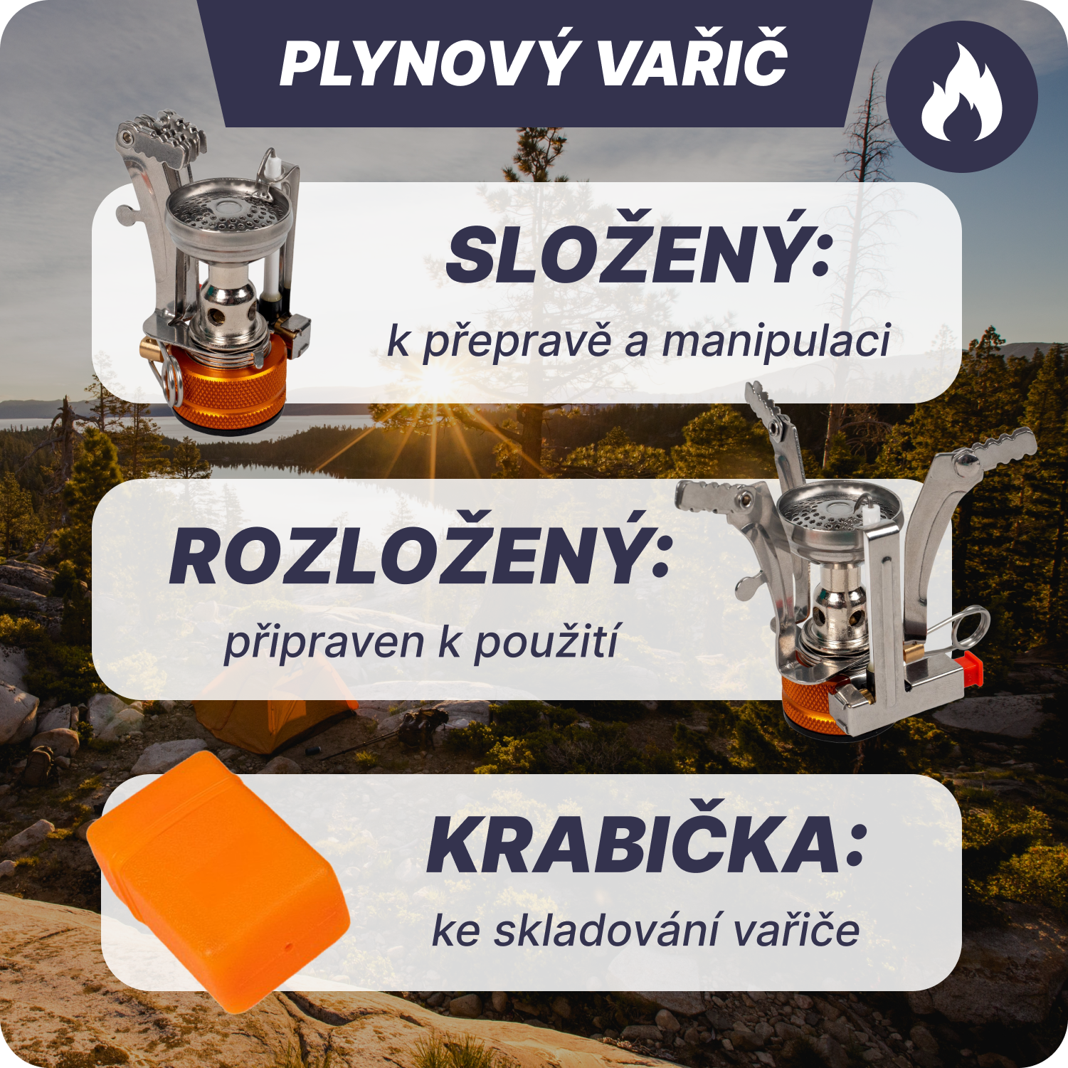 Součástí balení není kartuše do plynového vařiče na šroubovací uzávěr.