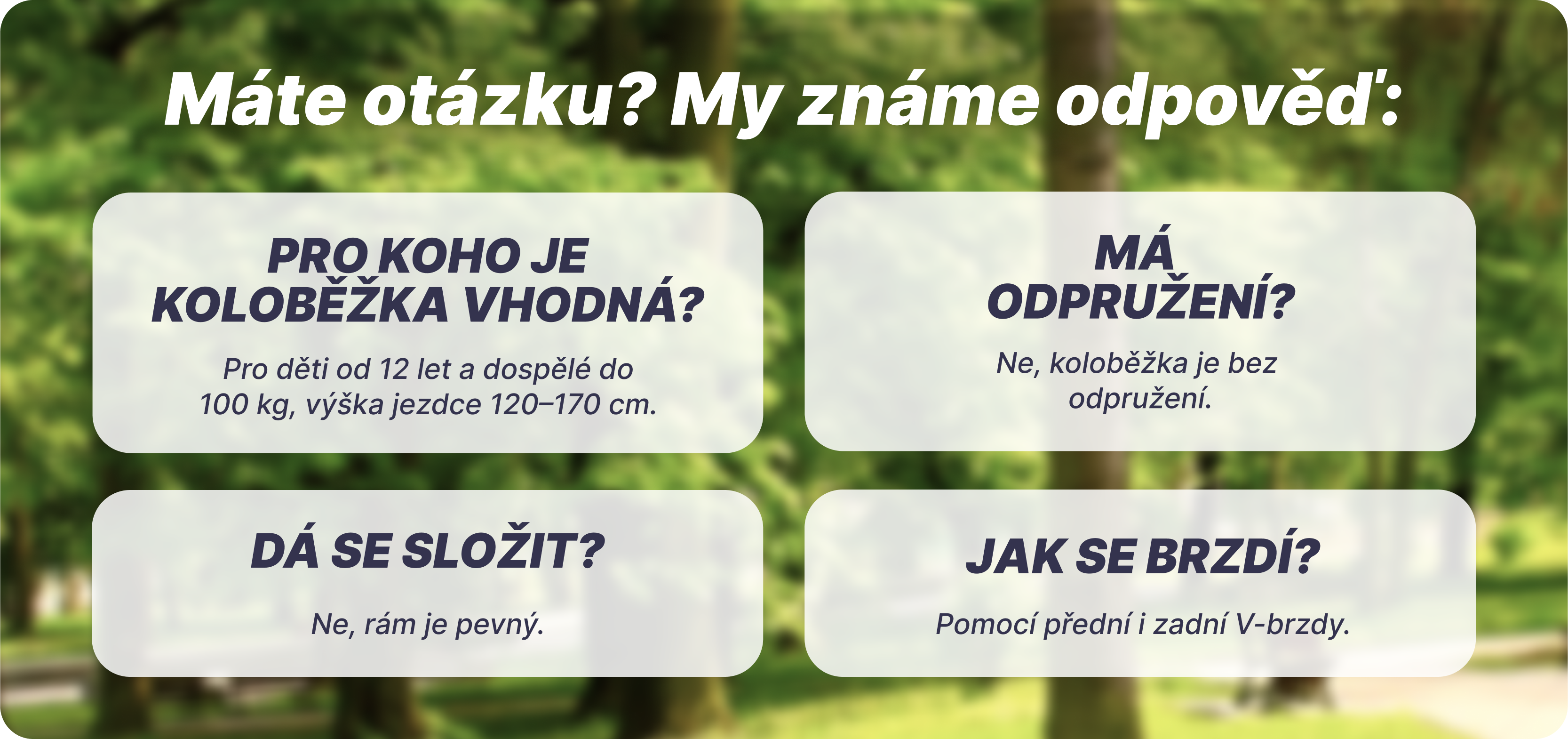 👉 Řídítka: pevná, výška 98 cm, gumové rukojeti + rohy
