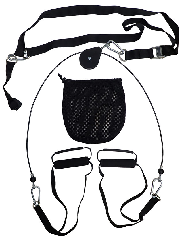 Jedná se o nejpropracovanější model s kovovou karabinou na snadné a rychlé upevnění a hlavně s vestavěnou kladkou na upínacím popruhu, díky které je možné mnohem variabilnější cvičení s možností střídavého posilování nikoli soupažného jako u pevných popruhů.