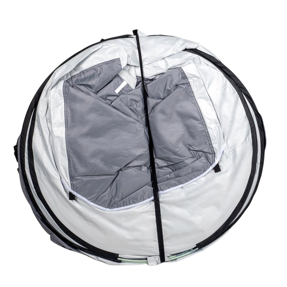 ➡️ Stříbrná povrchová úprava odráží sluneční paprsky a udržuje stan chladnější i v létě