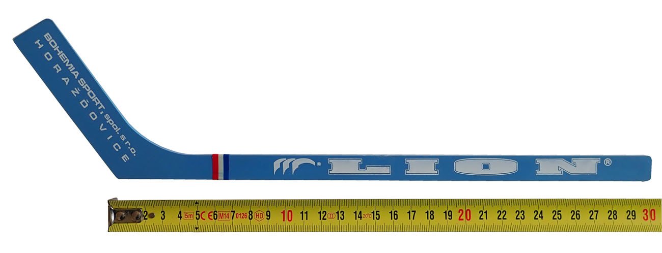 Plastová mini hokejka LION, délka 30 cm. K dispozici v barvě modré.