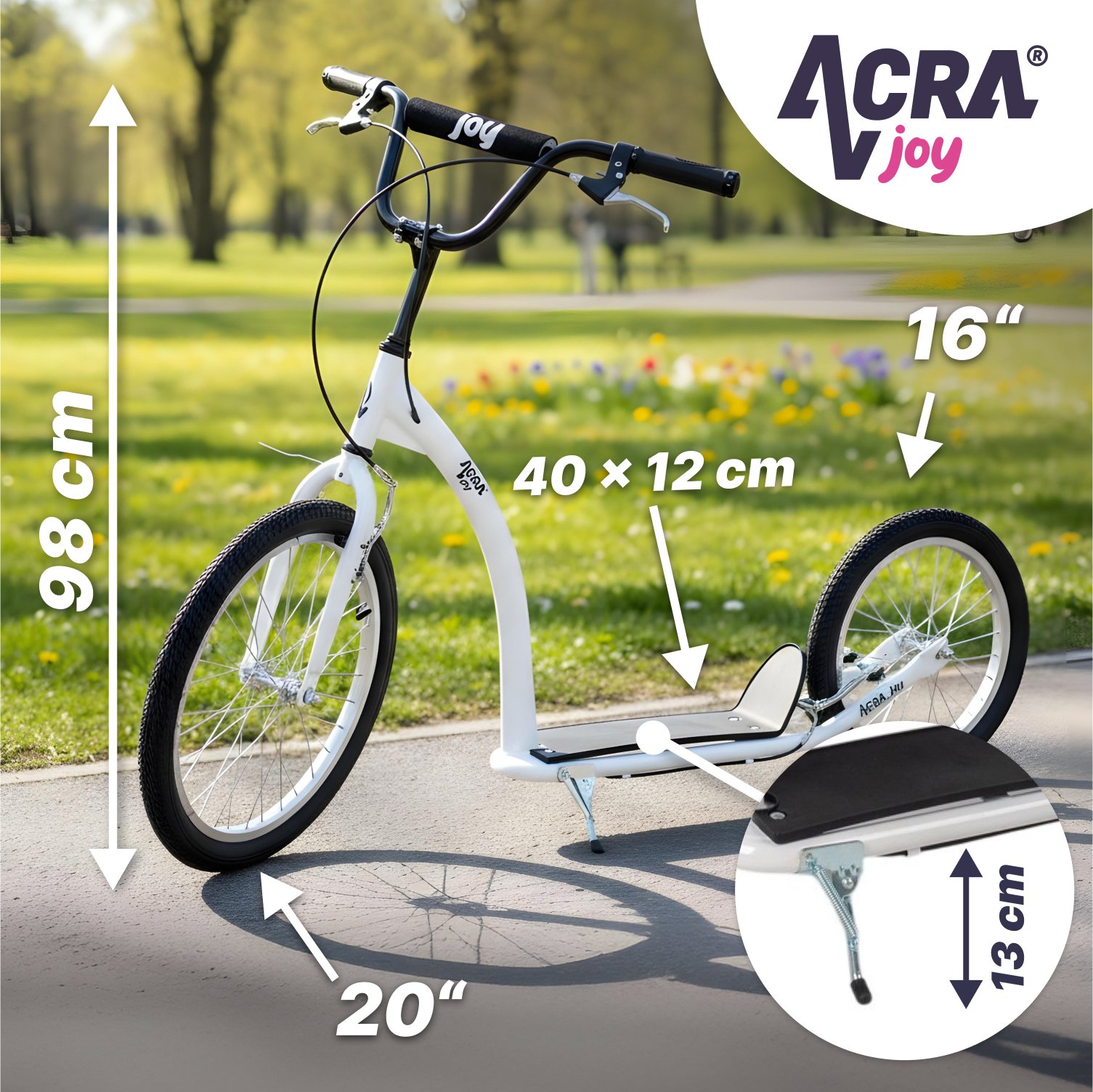 Koloběžka Acra Joy AVEN Koloběžka Acra Joy Aven je rychlá, sportovní, ideální pro jízdu po silnici, cyklostezce i v menším terénu.