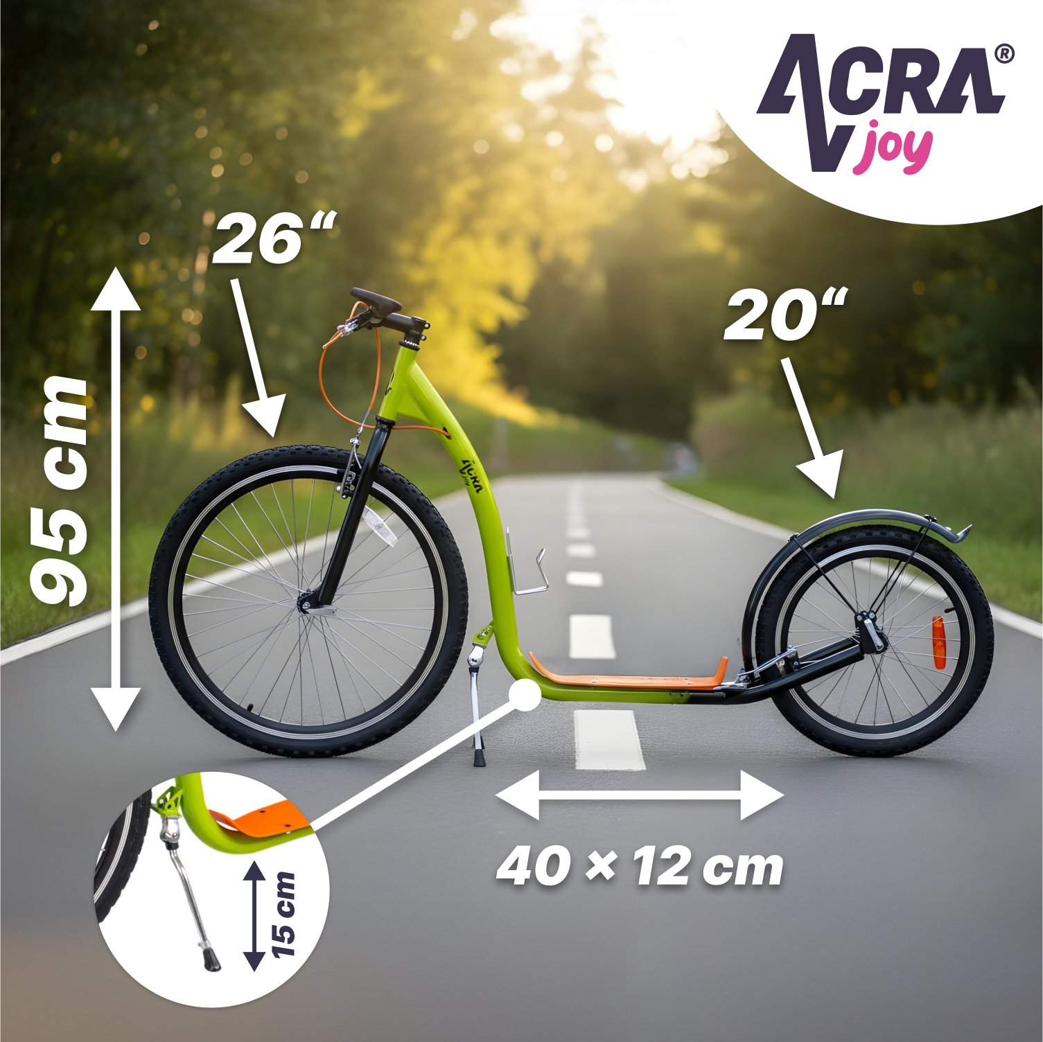 Koloběžka Acra Joy Racer Koloběžka Acra Joy Racer je rychlá, sportovní, ideální pro jízdu po silnici, cyklostezce i v menším terénu.