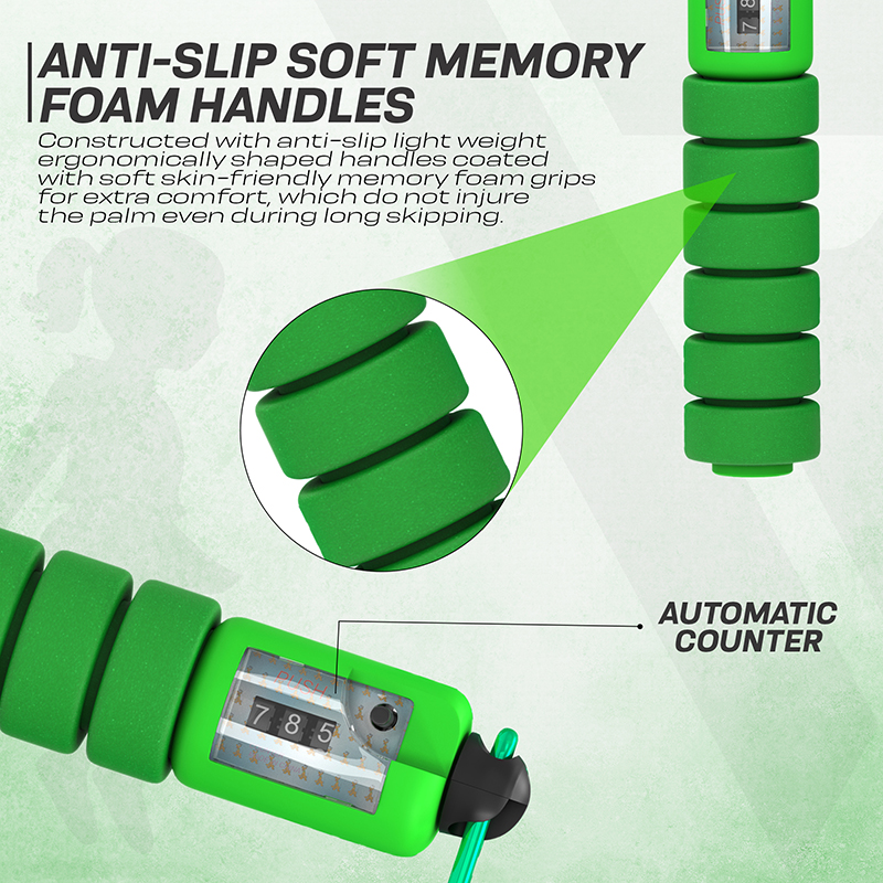Švihadlo s počítadlem - 2,75 m dlouhé. Jedná se o pomůcku na kondiční cvičení. Při každém skoku se počet skoků nasčítává. Rozpětí počítadla od 0 do 999.