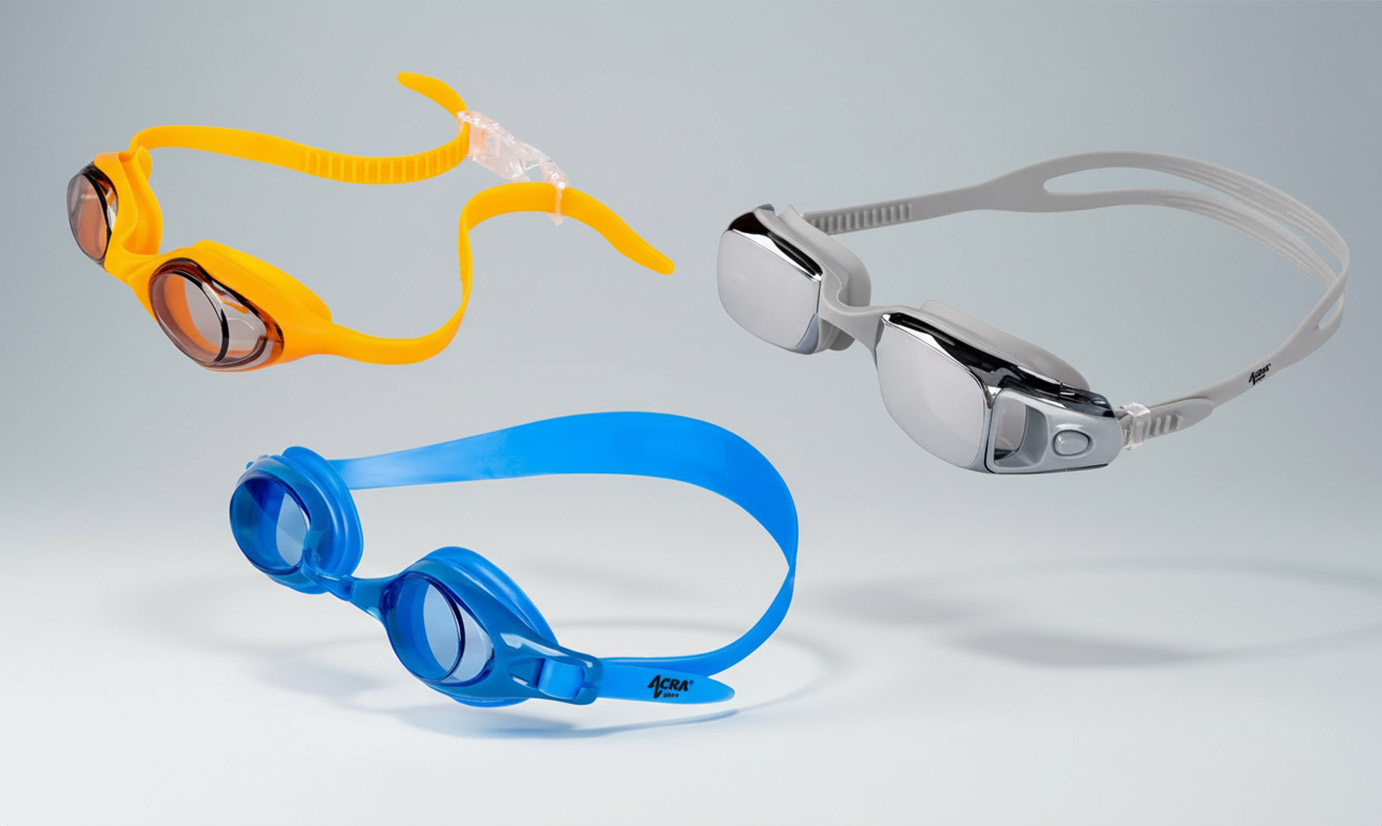 V nabídce ACRA najdete jednoduché dětské modely pro běžné plavání i dospělé brýle s úpravou proti mlžení, UV ochranou a pohodlným dvojvrstvým těsněním.