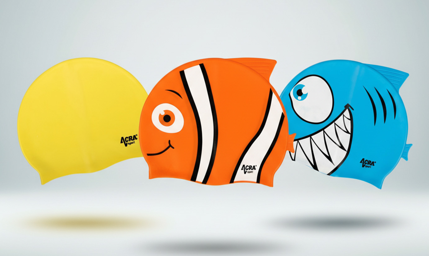 U nás najdete především silikonové plavecké a koupací čepice pro dospělé i děti, včetně veselých dětských motivů, a sportovnější varianty.