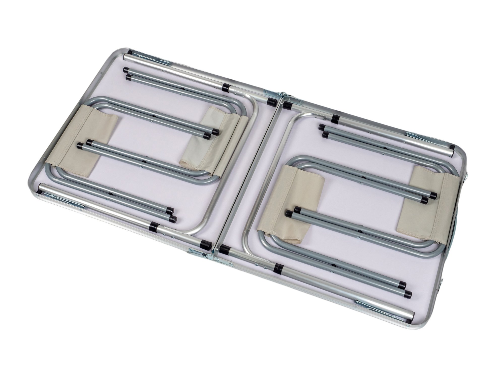 - Kompaktní a skladný: Díky promyšlenému designu se stůl a židle snadno skládají a vejdou se do sebe, takže zaberou minimum prostoru v batohu nebo autě.