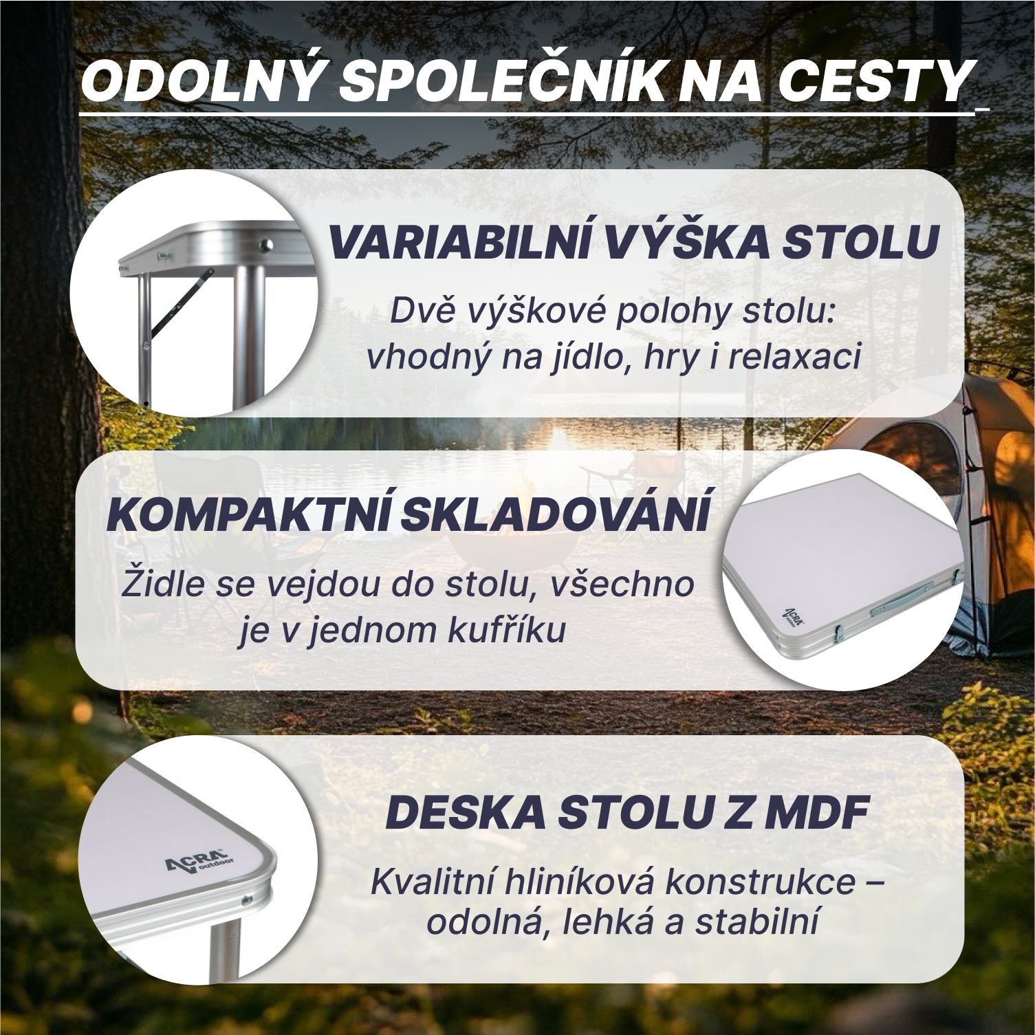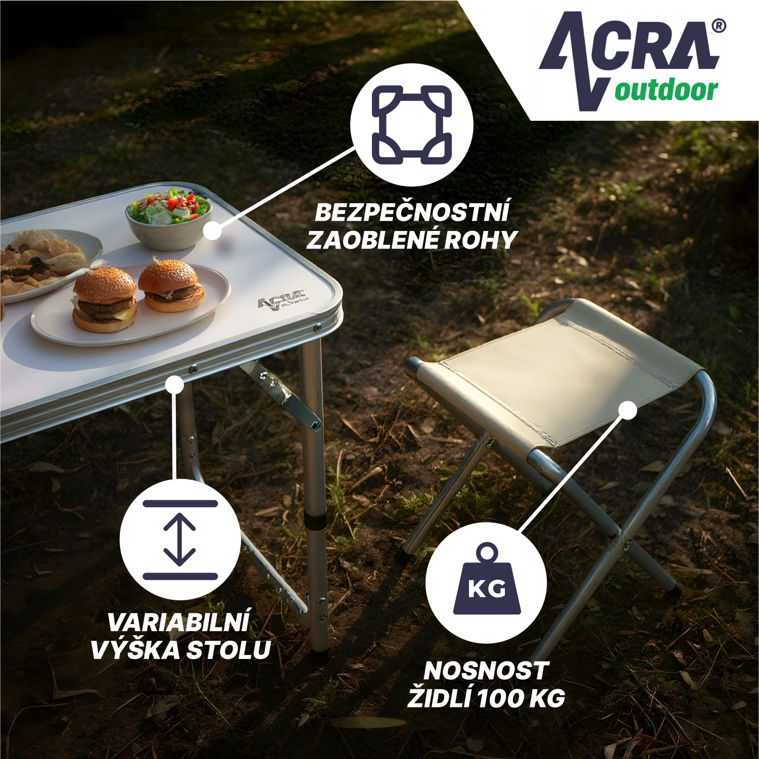 Hlavní přednosti kempingového setu Acra C3L: