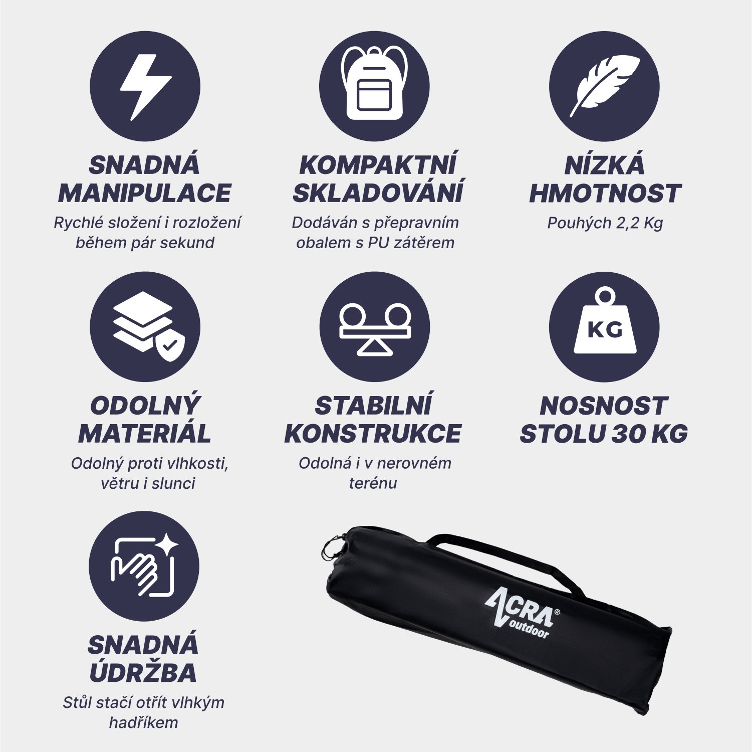Campingový skládací stůl Acra C3S: Všestranný pomocník pro zahradu, terasu i kempování!