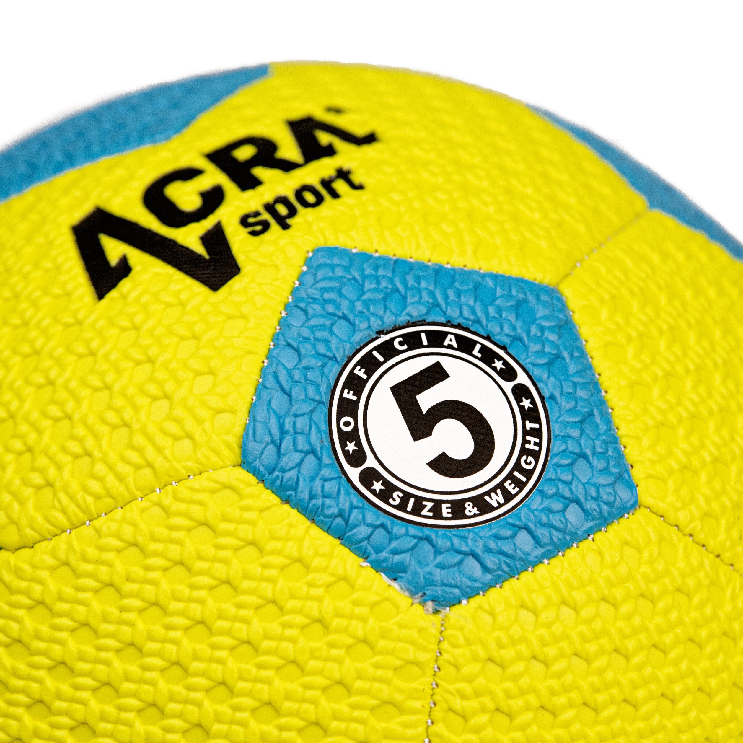 Atraktivní a viditelný design: Díky kombinaci jasně žluté a tyrkysové barvy (jak je na obrázku) je míč snadno viditelný za všech podmínek, což usnadňuje hru a zábavu. Moderní design s logem Acra dodává míči sportovní a dynamický vzhled.
