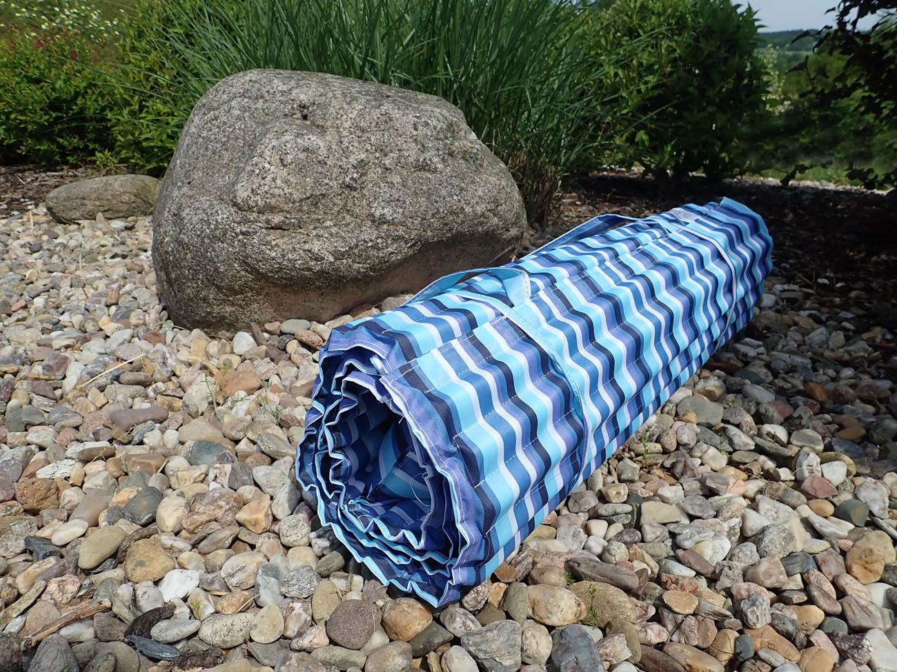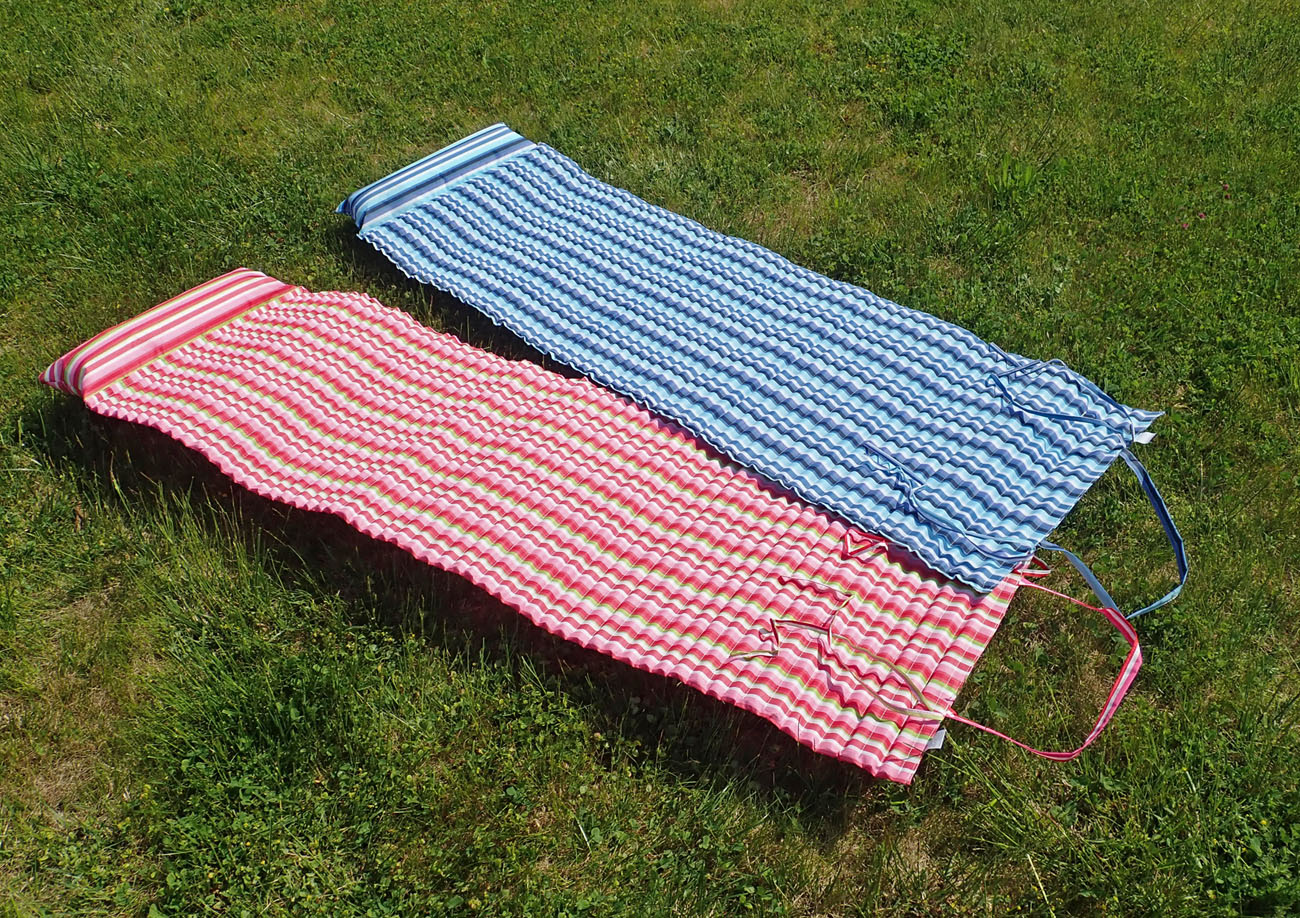 Plážové rolovací lehátko s podhlavníkem - nový a velmi skladný typ lehátka o rozměru 184 x 55 x 1,5 cm.