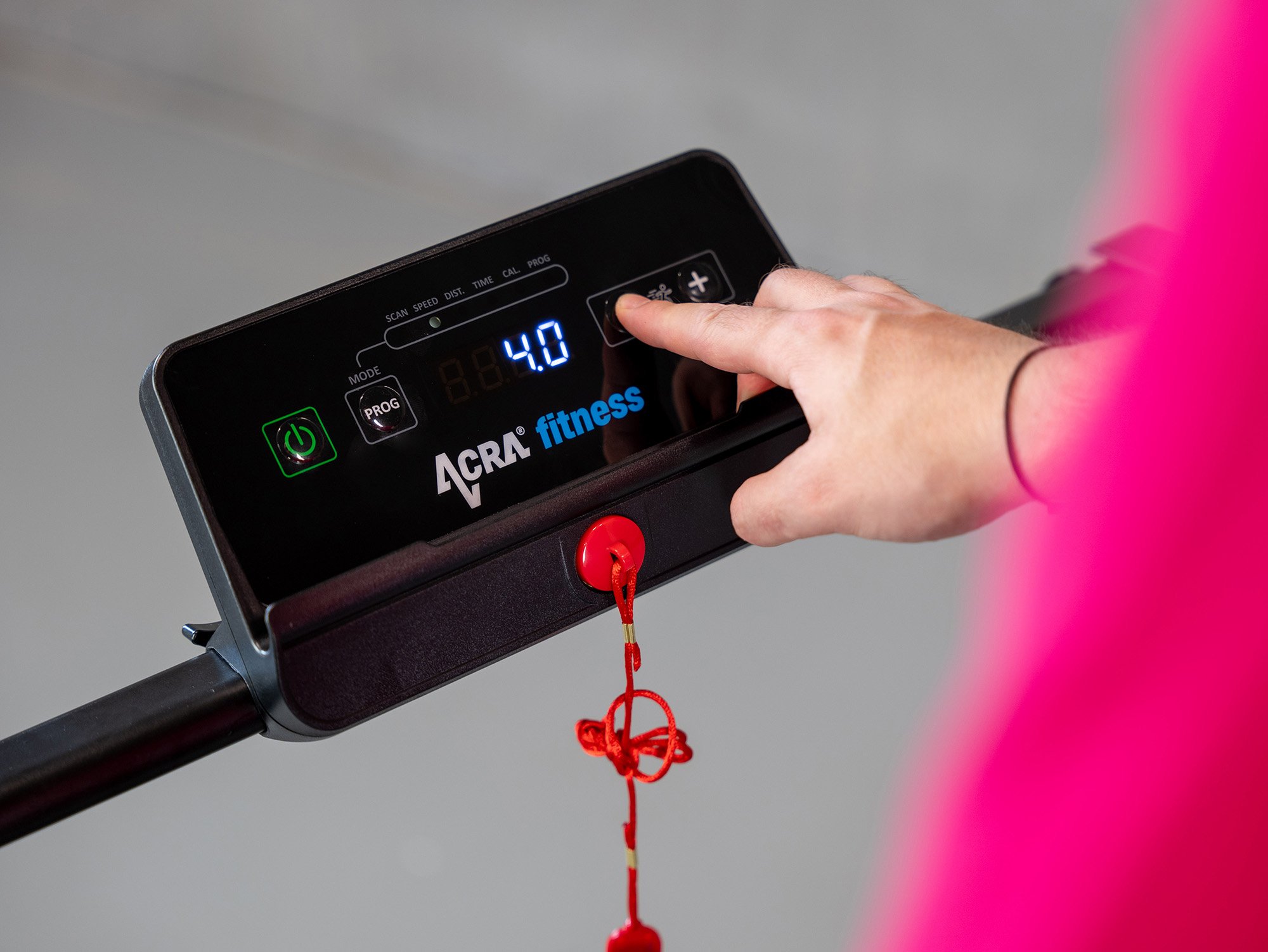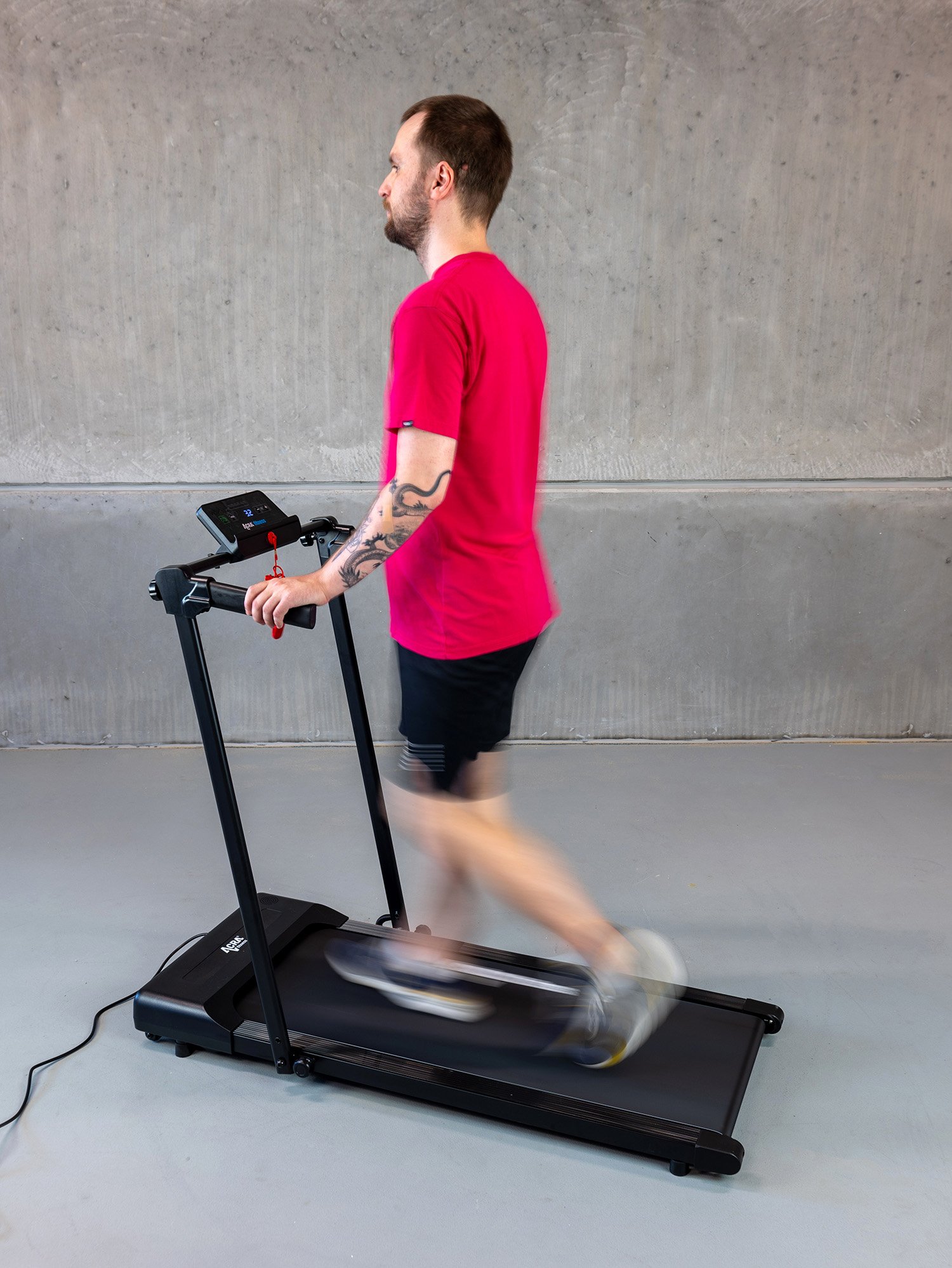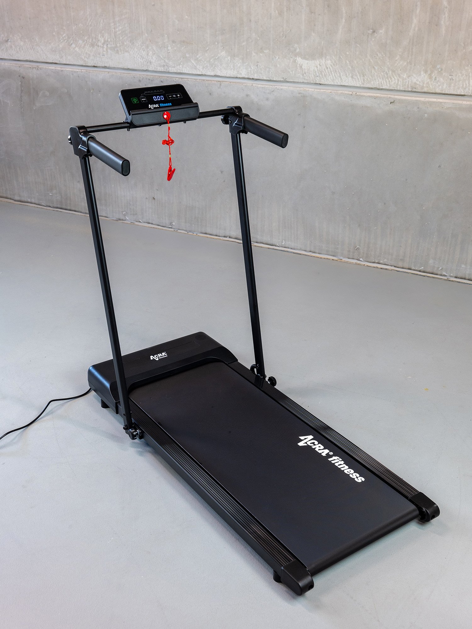- Bezpečný trénink: Krátký držák poskytuje stabilitu a bezpečnost při cvičení. Bezpečnostní klíč navíc umožňuje okamžité zastavení pásu v případě potřeby.
