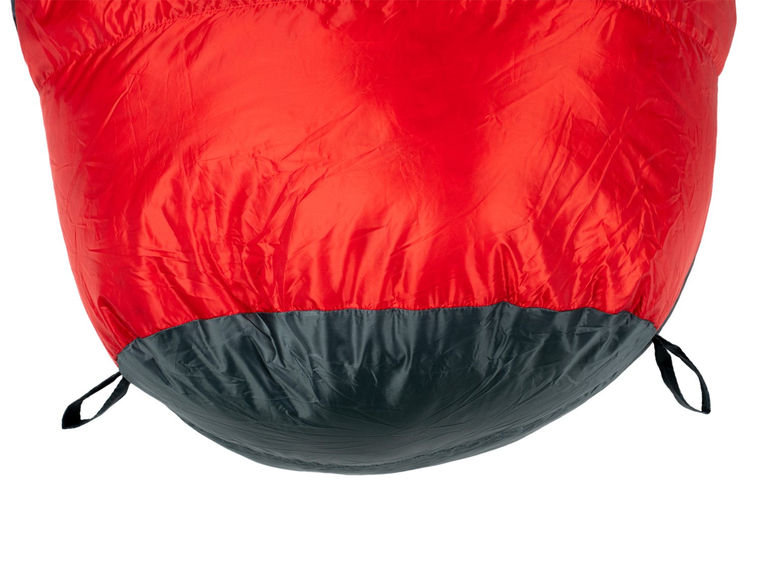 - Izolace z kachního peří 800: Vysoce kvalitní kachní peří s plnivostí 800 cuin zajišťuje vynikající izolační vlastnosti a nízkou váhu spacího pytle.