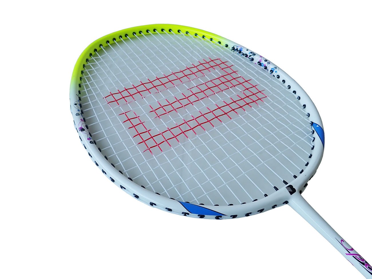 Hliníková badmintonová pálka ze zušlechtěného materiálu se speciálním odpružením jednodílného rámu pohlcujícím vibrace rámu.