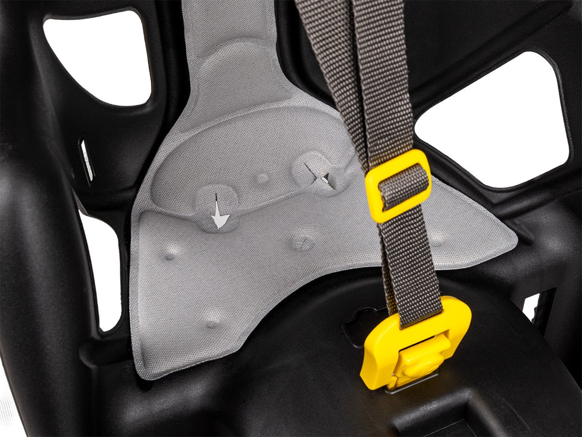 - SYSTÉM UPEVNĚNÍ: Sedadlo lze připevnit k rámu. Kompatibilní s rámy o průměru 28-45 mm a délce 28-60 mm. Sedačka disponuje mimořádně pohodlnou bezpečnostní přezkou, která se připevňuje a uvolňuje jednou rukou.