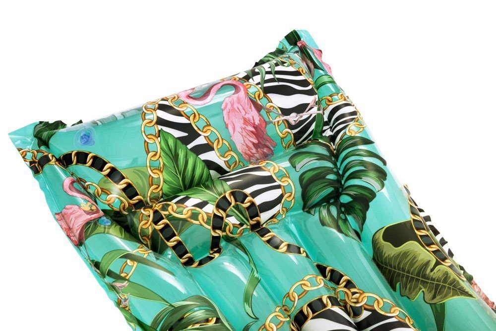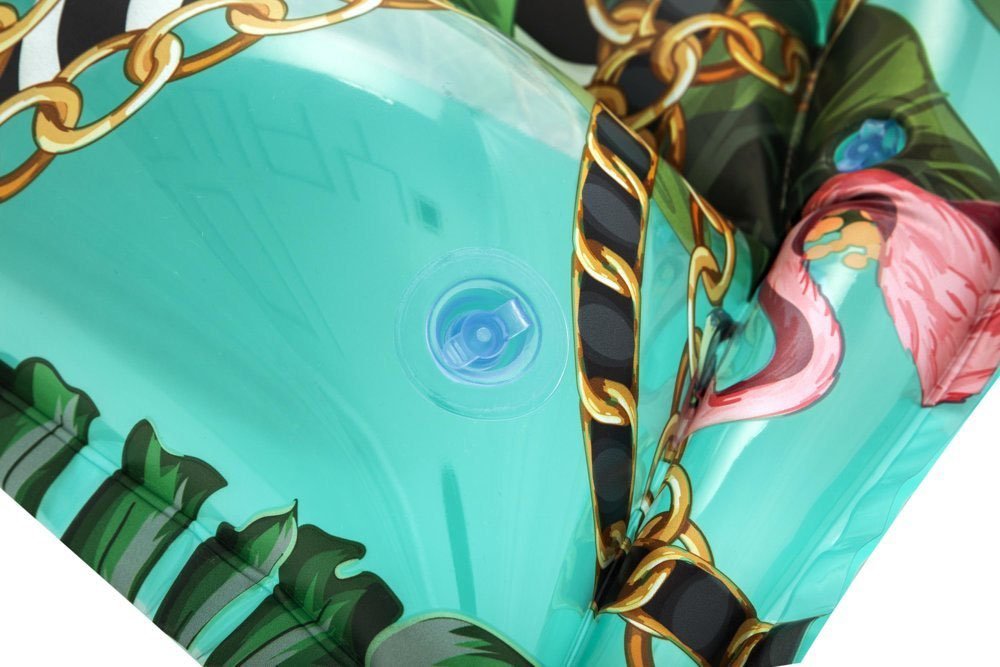 Nafukovací lehátko s líbivým potiskem exotickými motivy. Lehátko má nafukovací polštář a pět nafukovacích komor na ležení se samostatným ventilem. Rozměr lehátka je 183 x 69 cm.