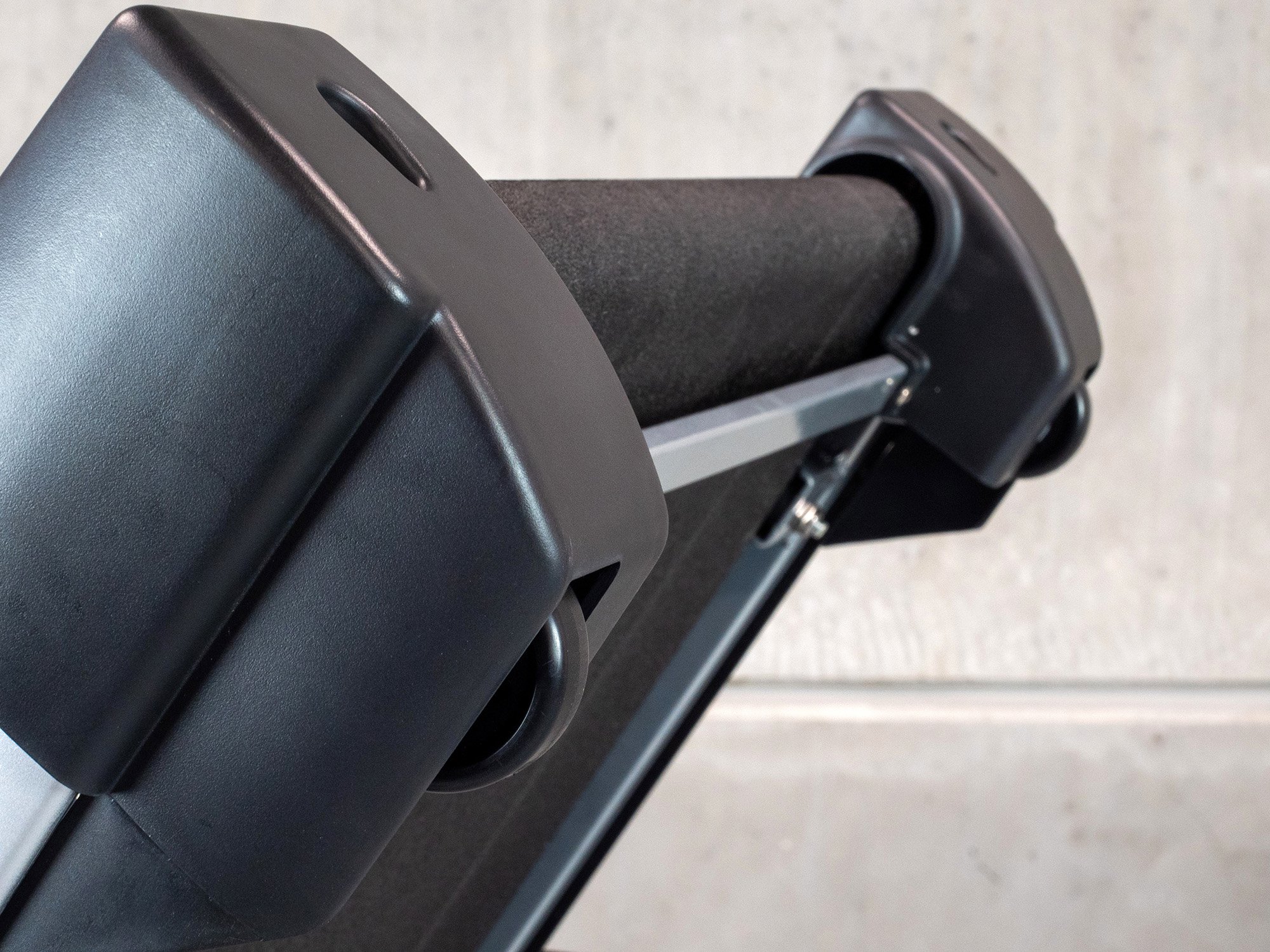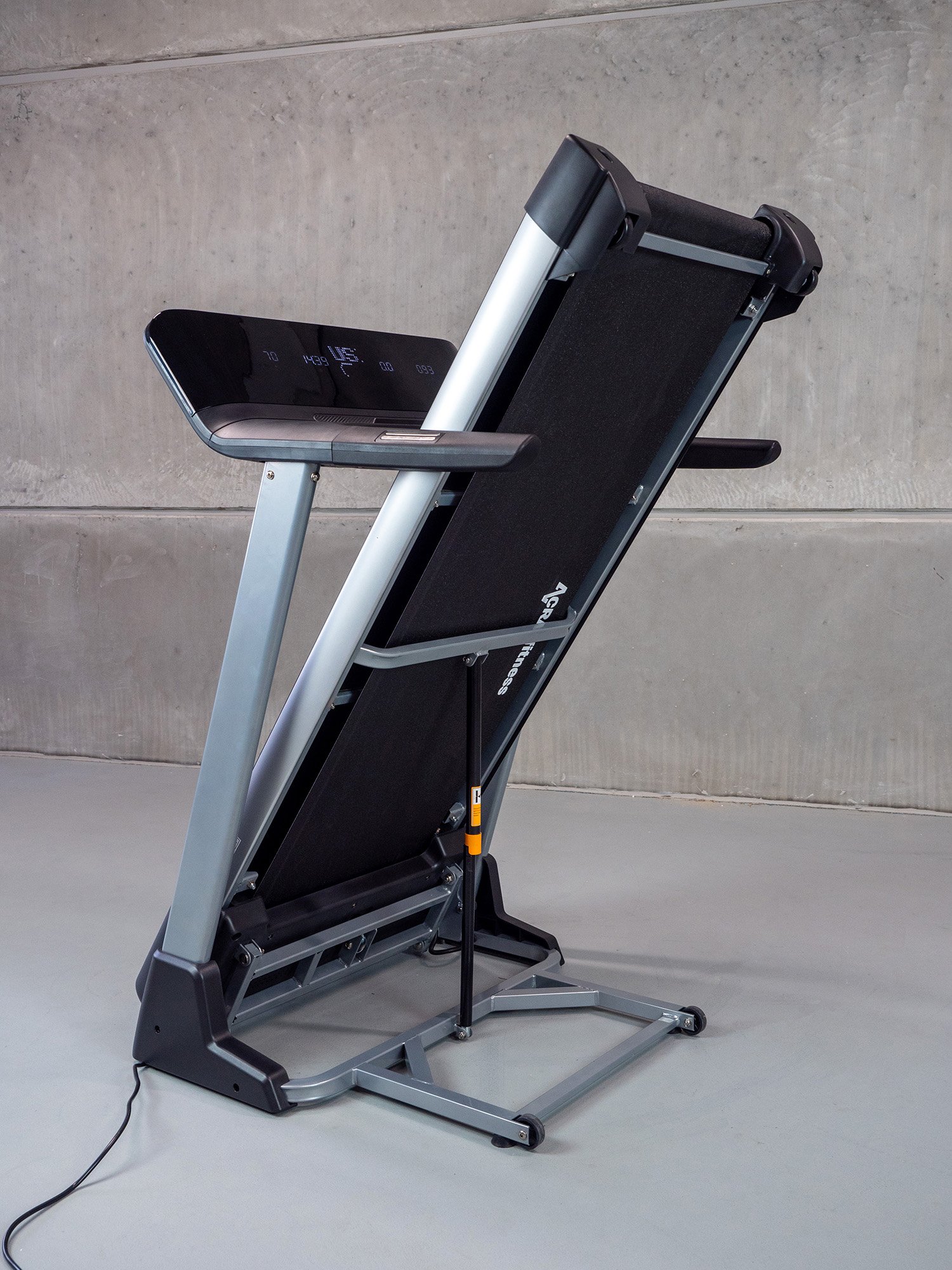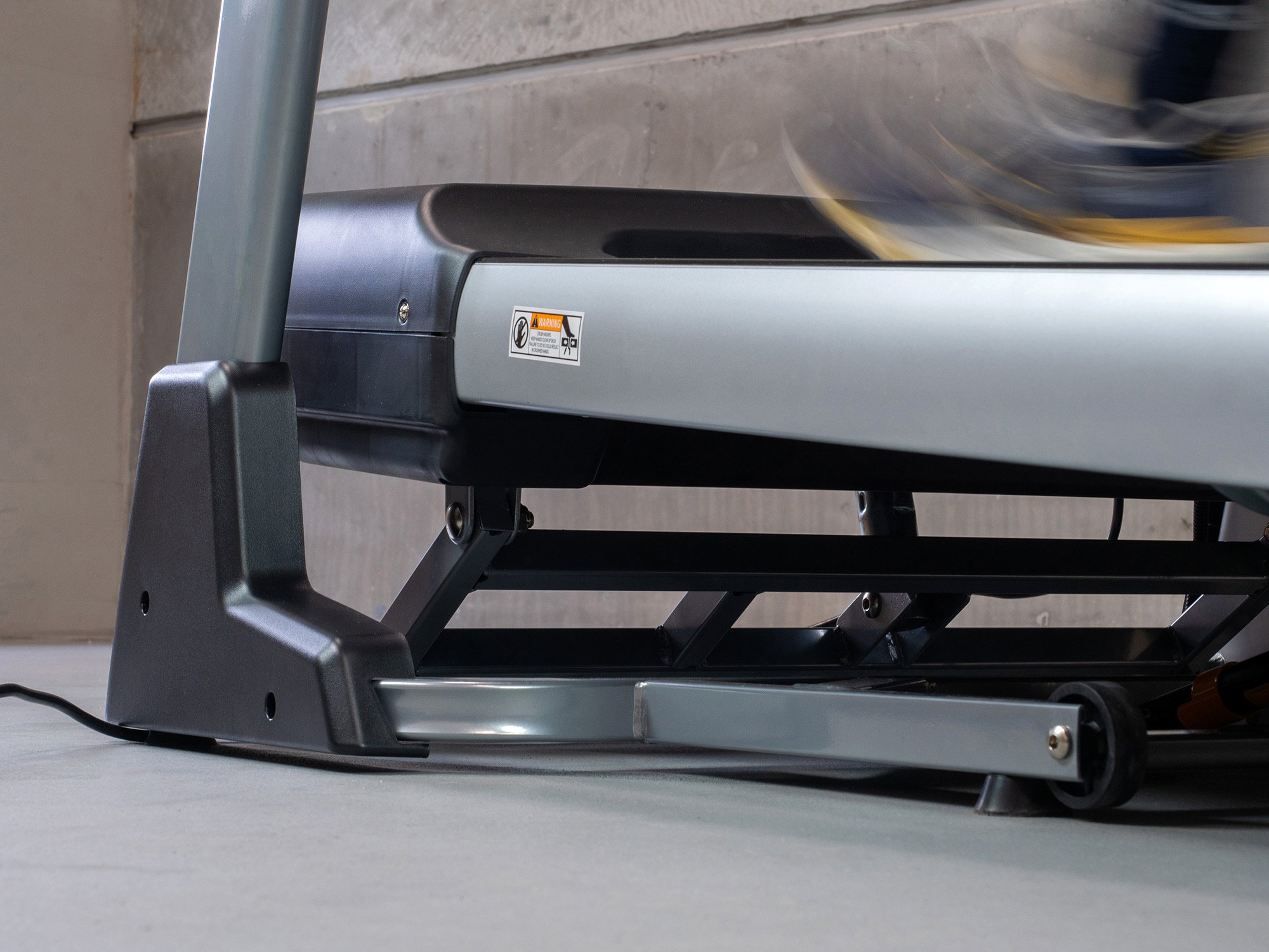 Pro úsporné skladování lze běhací část zvednout mezi rukojeti a díky kolečkům pás snadno přemístíte ve skladovací poloze.