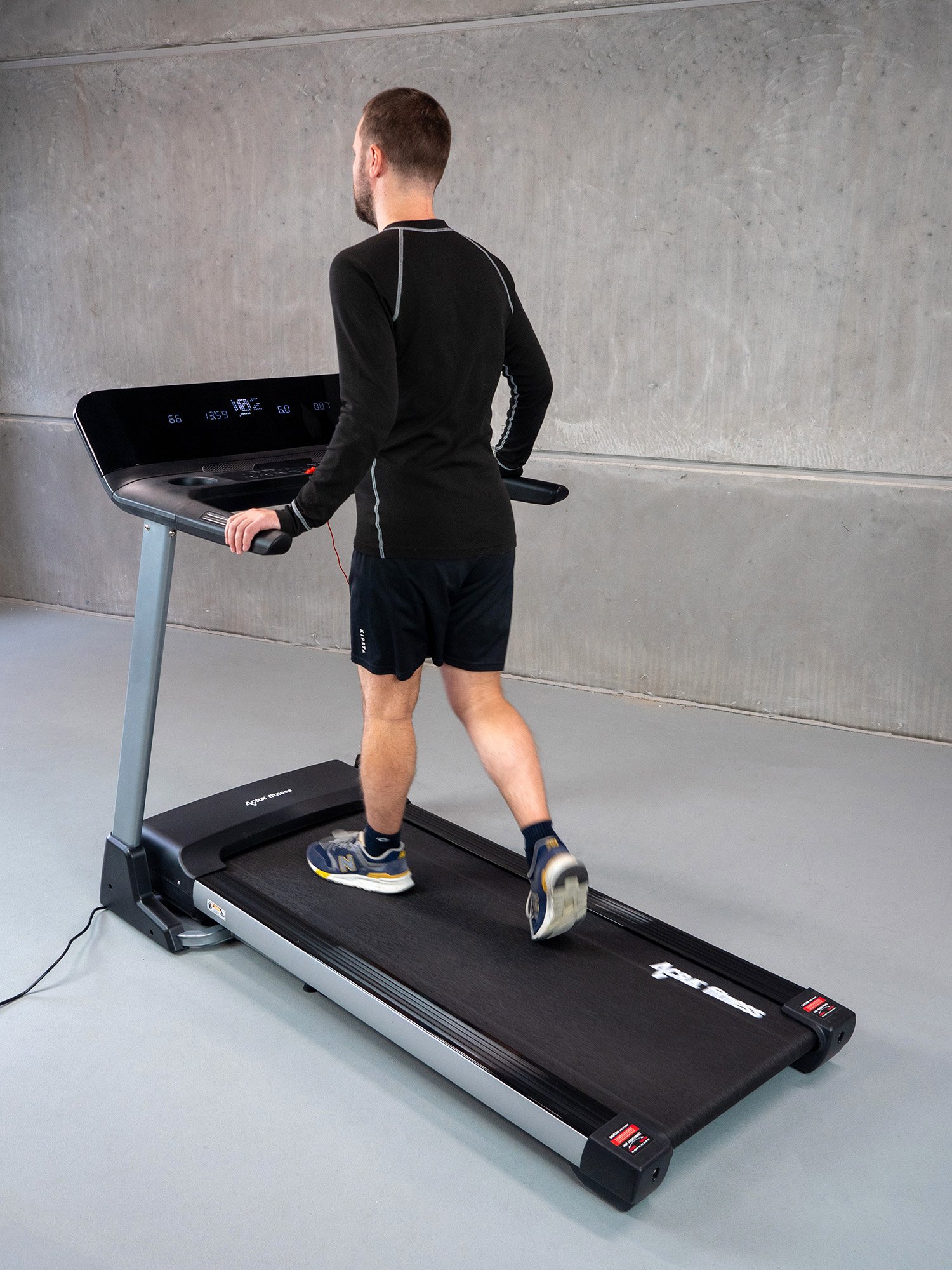 Pás je poháněn elektromotorem s konstantní rychlostí 2,0 HP a umožňuje nastavení rychlosti v rozmezí 1-18 km/h. Ovládací panel je vybaven rukojetěmi se snímači tepové frekvence a možností regulace zátěže.