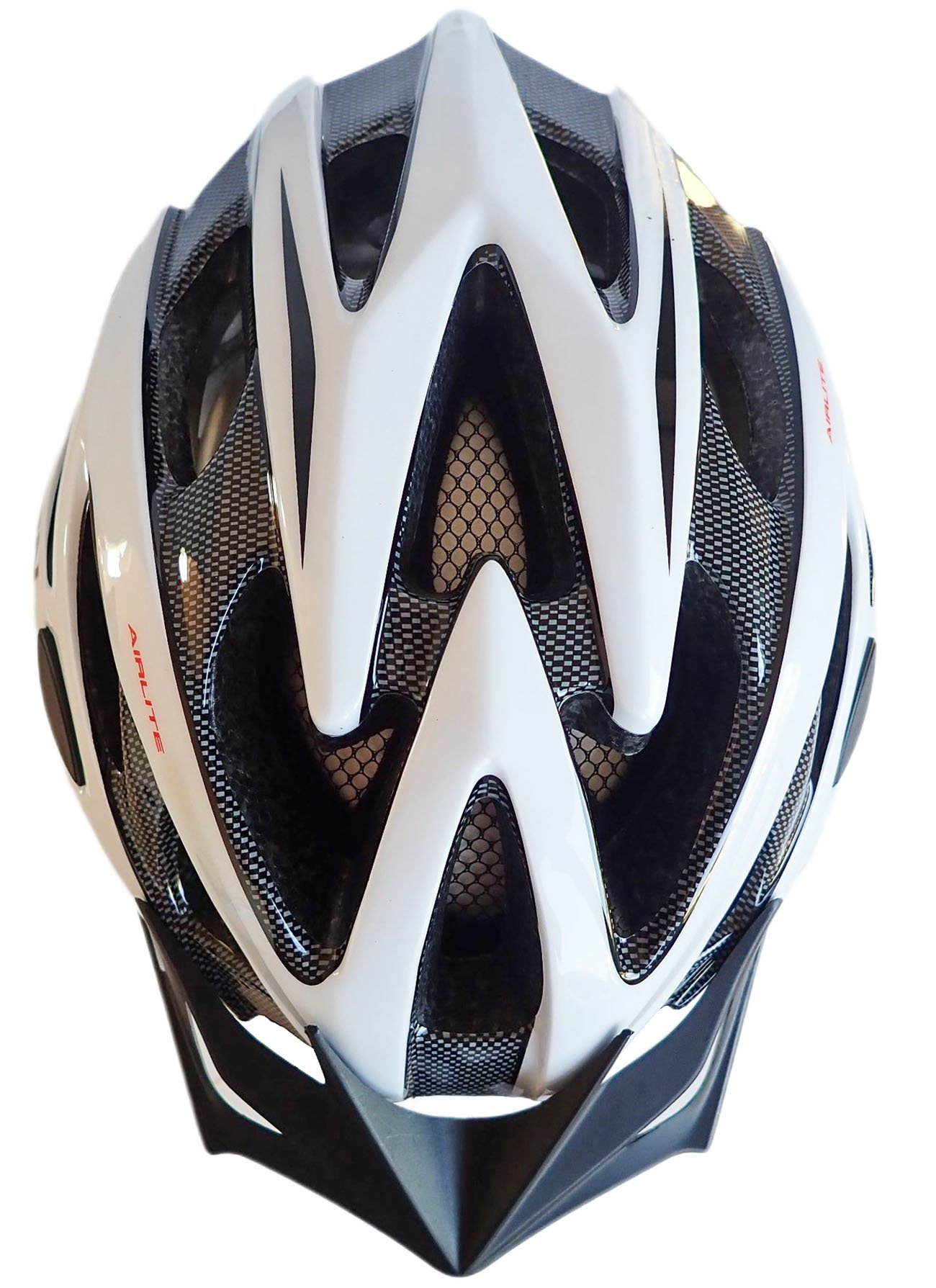 Cyklistická helma - odlehčená - BÍLÁ, hmotnost 240 g, 25 větracích otvorů, stahovací pásek se šroubem okolo hlavy pro dokonalé upnutí, demontovatelný clonící štítek, síťku proti…