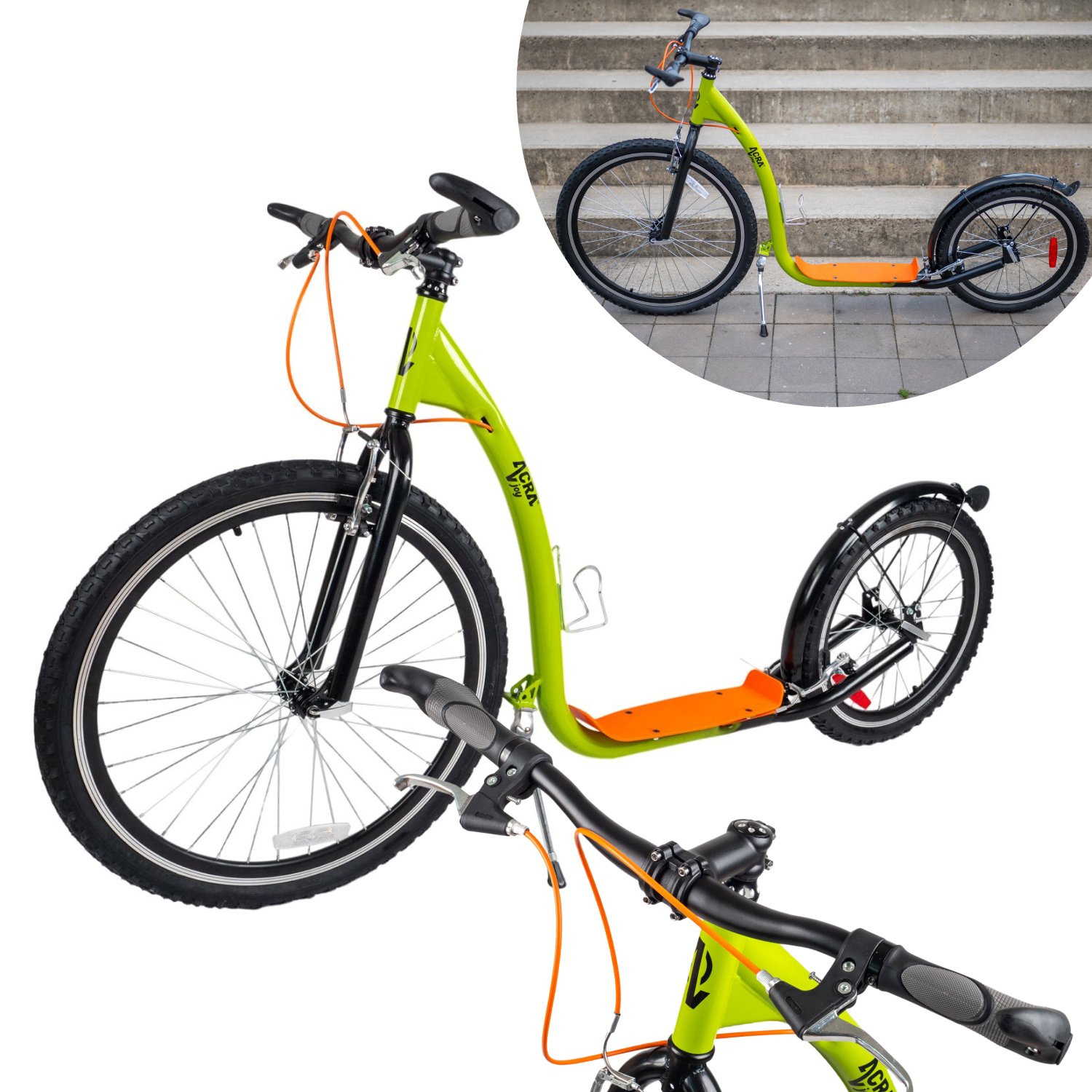 Koloběžka Acra Joy Racer je rychlá, sportovní, ideální pro jízdu po silnici, cyklostezce i v menším terénu. Je vhodná pro jezdce všech úrovní a je ideální nejen pro dojíždění do práce nebo školy, ale i pro zábavu a volný čas i pro výlety do terénu.