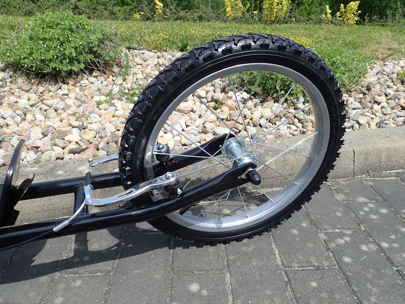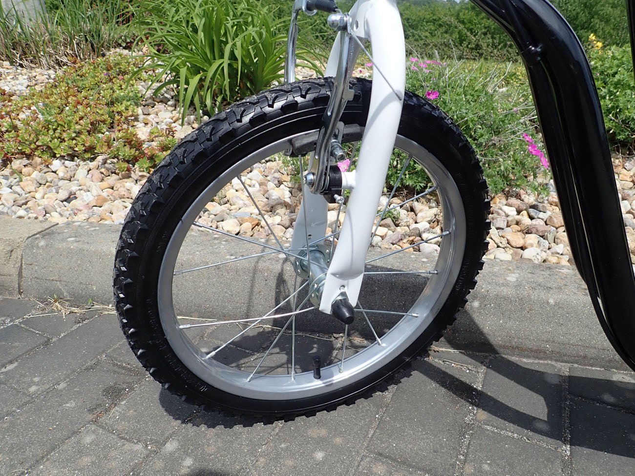 Koloběžka pro děti i dospělé. Doporučené od 9 let, nosnost 90 kg. Rám Hi-tech vyztužená ocel. Pneumatiky 16" + 16" nafukovací, ráfky - ocelové zušlechtěné, max.