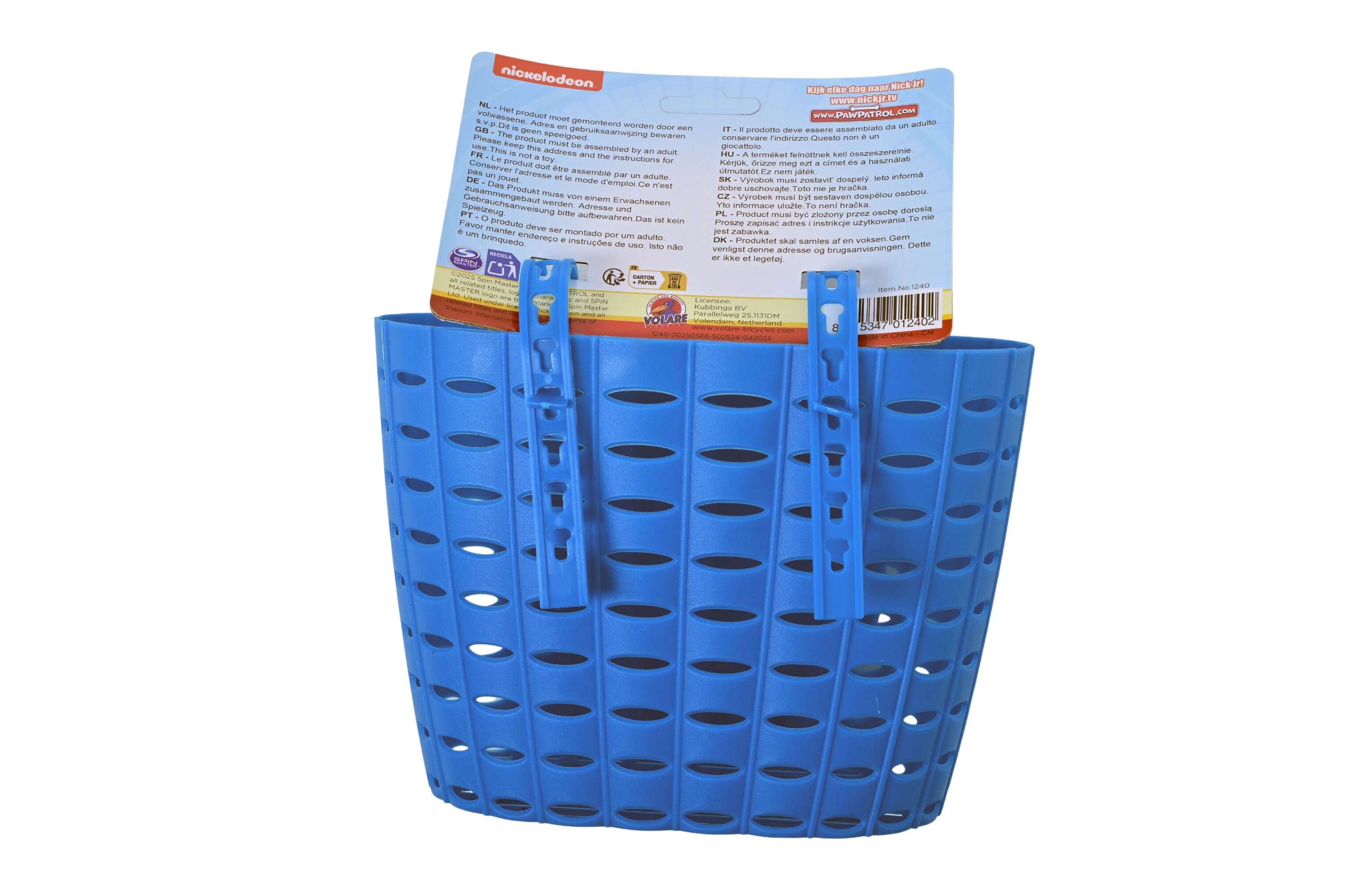 Praktický a zároveň stylový doplněk pro každé dětské kolo. Košík na kolo Volare Tlapková patrola umožní dětem vzít si na projížďku oblíbenou hračku, láhev s pitím nebo drobné poklady. Oblíbený motiv Tlapkové patroly dodává kolu hravý vzhled, který si malí cyklisté okamžitě oblíbí.