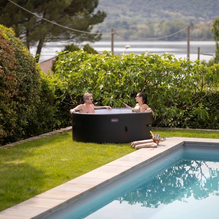 Vysokotlaká kulatá vířivá vana EASE.ZONE se 4-6 místy využívá technologii Drop-Stitch, která při nafouknutí na doporučený tlak poskytuje vynikající pocit tuhosti a uvnitř je více prostoru než u standardní vany z PVC. Tato vana je ideální pro relaxaci a uvolnění každodenního stresu v pohodlí vaší zahrady nebo domova.