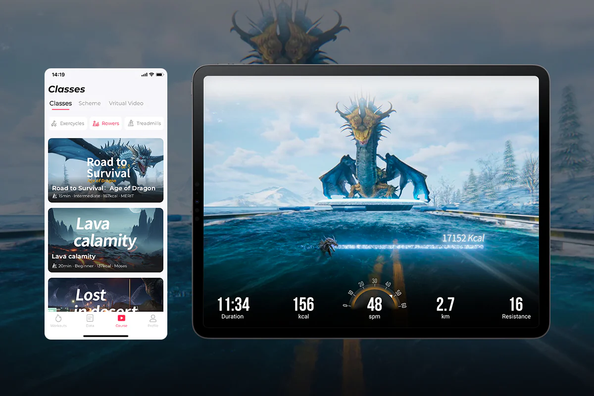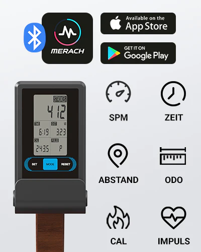 - Chytrý trénink s aplikacemi: Díky Bluetooth monitoru můžete stroj propojit s populárními aplikacemi jako Kinomap, Zwift nebo Merach. Užijte si trénink v režimu rozšířené reality (AR) a virtuálně veslujte po nejkrásnějších řekách světa.