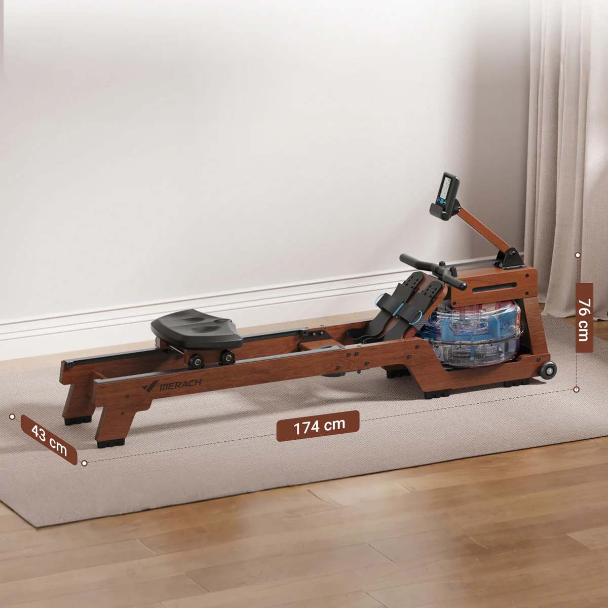 Zažijte sílu vody v pohodlí svého domova. Vodní veslovací trenažér Merach je vyroben z vysoce kvalitního masivního dřeva s certifikací FSC, které stroji dodává nejen luxusní vzhled, ale také mimořádnou stabilitu a dlouhou životnost. S nosností až 150 kg a robustní konstrukcí jde o prémiové vybavení pro každé domácí fitness.