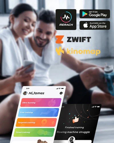 - Integrované aplikace – Připojení k aplikaci Kinomap, Zwift, Apple Health, Google Fit, Fanton Fite (Merach) pro personalizované tréninky.