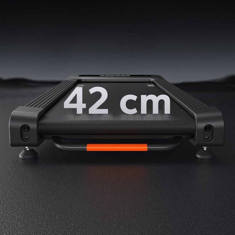 Díky robustní průmyslové ocelové konstrukci a profesionálnímu běžeckému pásu o šířce 42 cm je tento běžecký pás ideální pro větší uživatele a intenzivní HIIT tréninky. Zesílená základna zajišťuje stabilní výkon bez viklání.