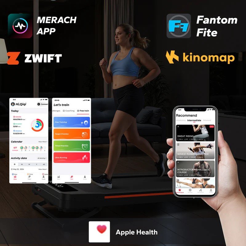 Merach, Kinomap, Zwift, Apple Health, Fanton Fit (od Merach)