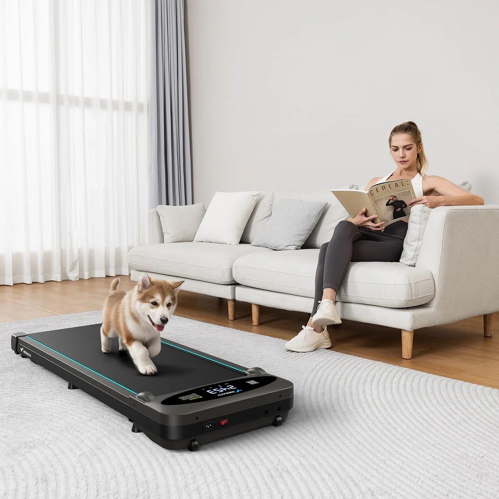 S rozměry 116 x 47,6 x 13 cm se tento přenosný běžecký pás vyznačuje ultratenkým tělem o tloušťce 13 cm a odnímatelným napájecím kabelem, díky čemuž jej můžete skladovat ve svislé nebo vodorovné poloze i v omezených prostorech. Ideální pro malé místnosti!