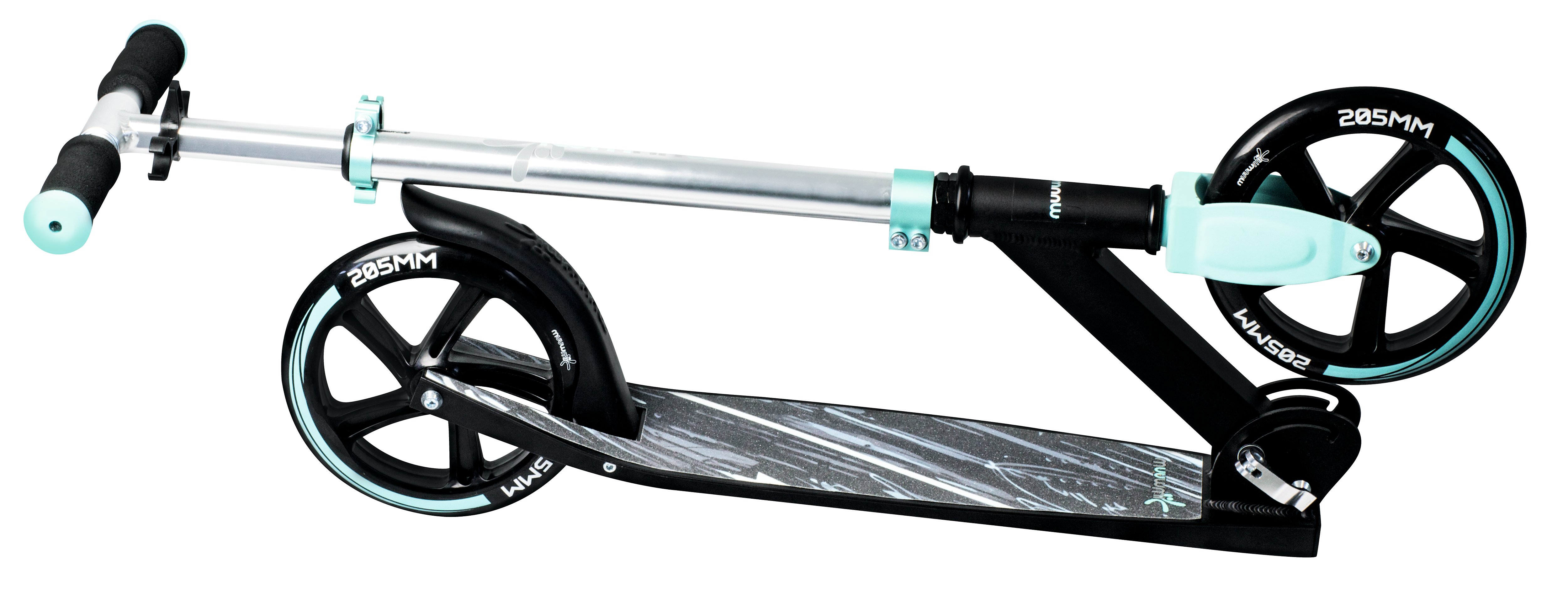 • Stylový design: Buďte originální s touto koloběžkou v tyrkysové barvě.