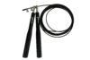 Švihadlo Acra Jump černé je vynikající cvičební pomůckou pro zlepšení celkové kondice. Rukojeti, které jsou vyrobeny z pevného hliníku, mají protiskluzový povrch, což zajišťuje bezpečné a pohodlné uchycení. Kovová otočná ložiska s utahovacím šroubem umožňují snadné nastavení délky lanka dle potřeby. Samotné lanko má ocelové jádro chráněné gumovou bužírkou, a je zakončeno gumovými odnímatelnými pouzdry, které umožňují přesné zkrácení švihadla.