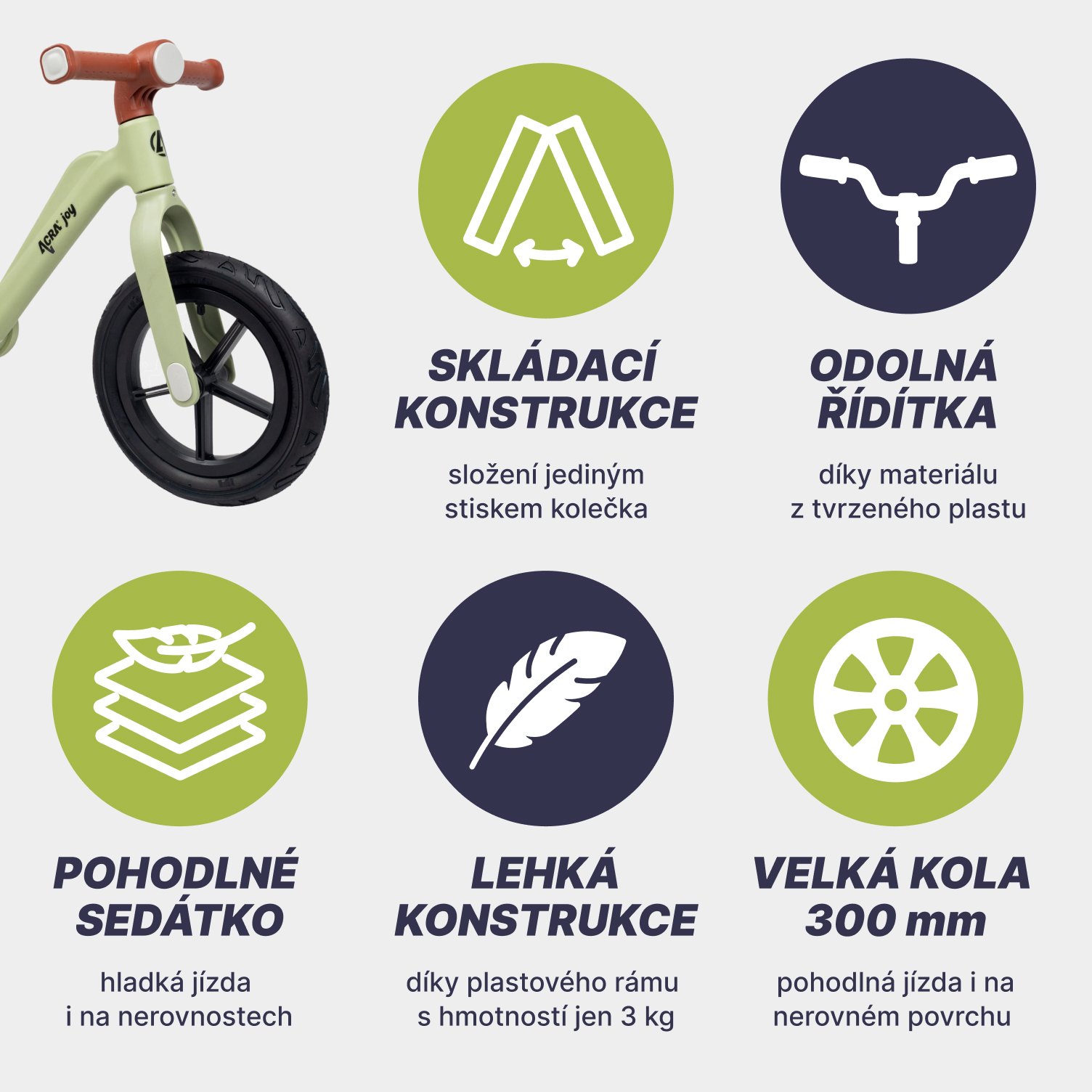 - Skládací: Odrážedlo lze složit jediným stisknutím středového kolečka