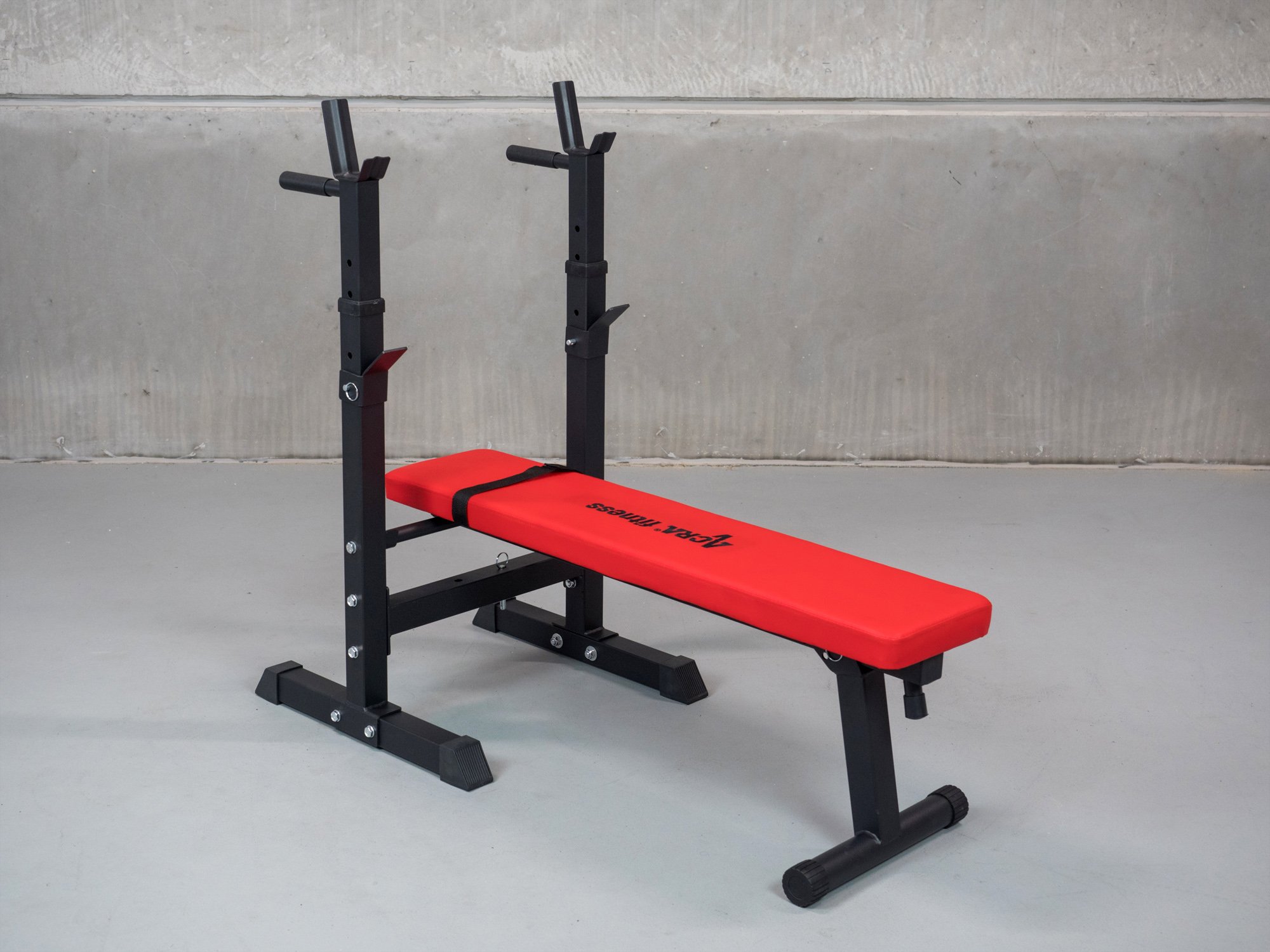 Posilovací lavice má stabilní trojúhelníkovou konstrukci v kombinaci s vysoce kvalitními a silnými materiály, které zajišťují vaši bezpečnost a stabilitu během cvičení. Dále je doplněna 2 pevnými podpěrami na činky. Polstrovaný povrch lavice zabezpečuje perfektní komfort se snadnou údržbou.