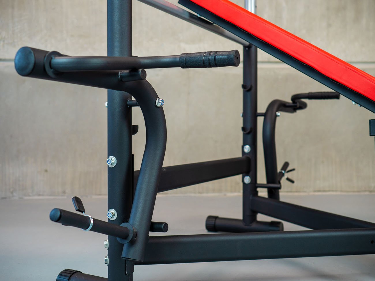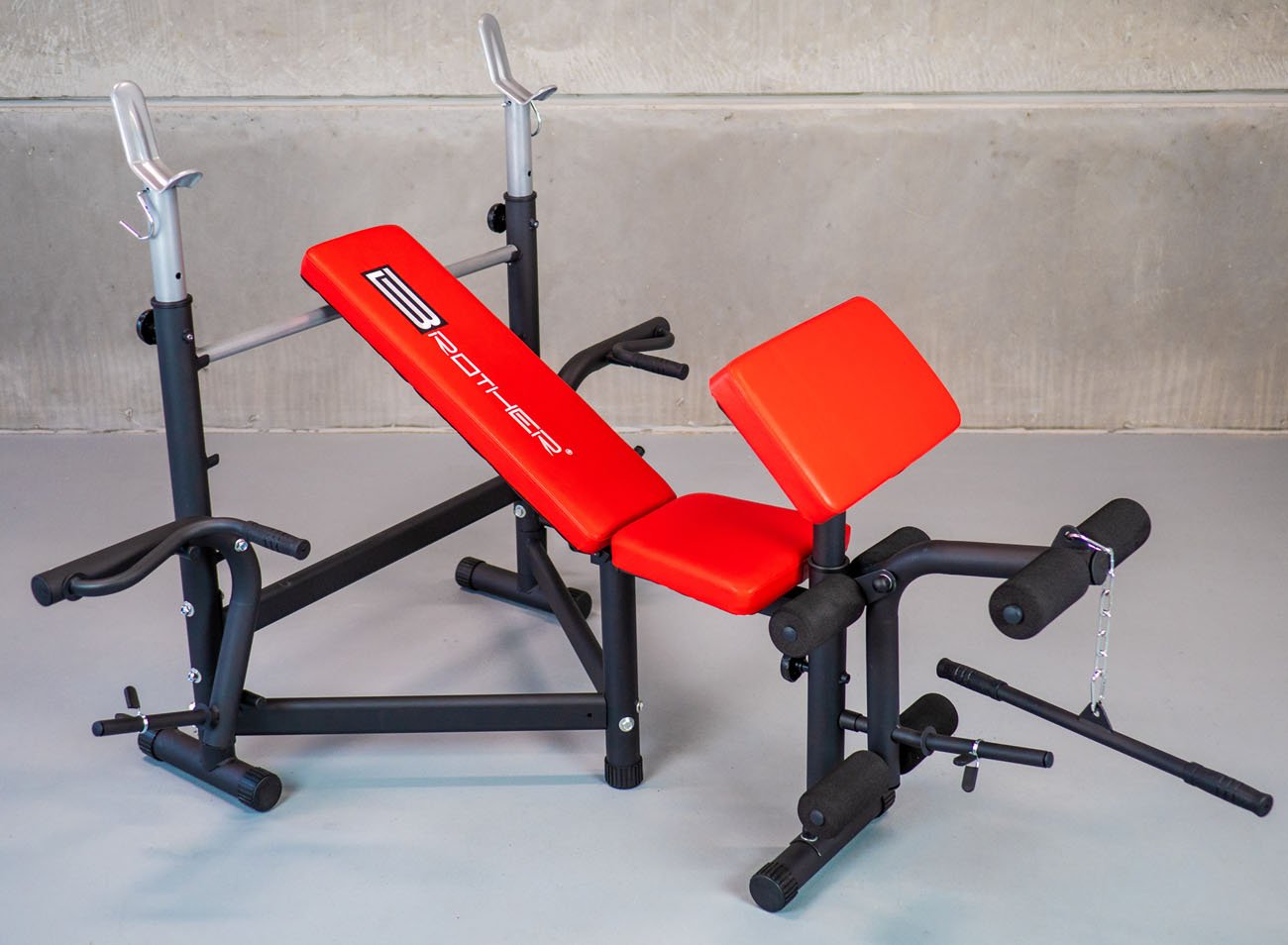 Posilovací lavice WB3000 profi má robustní konstrukci lavice i stojanů na obouruční činku a je určena pro cvičení s většími zátěžemi.