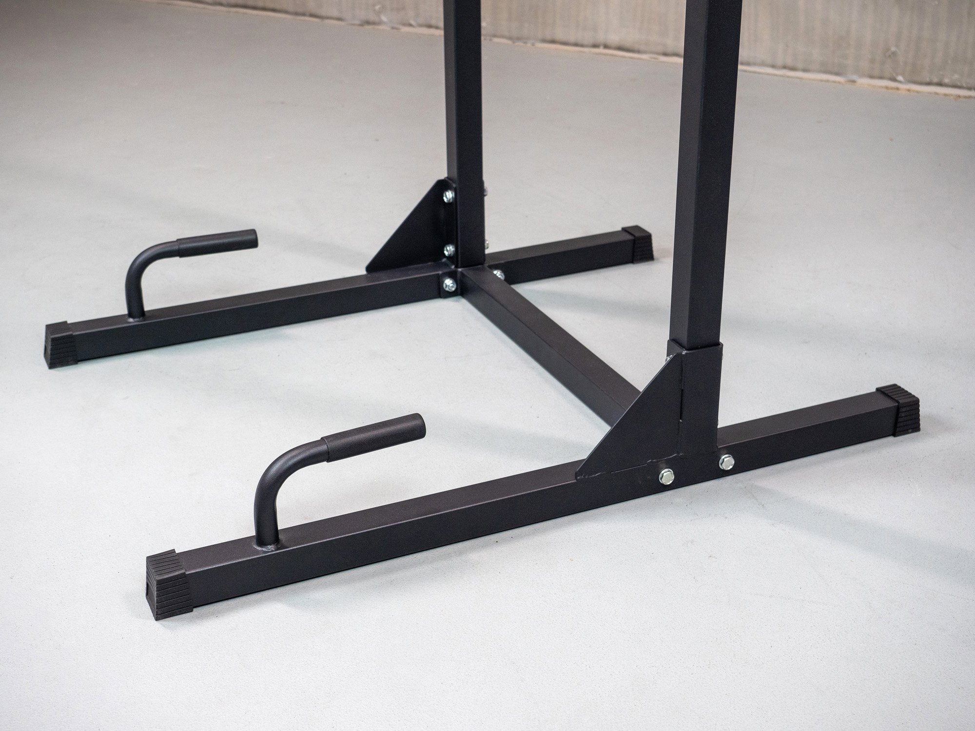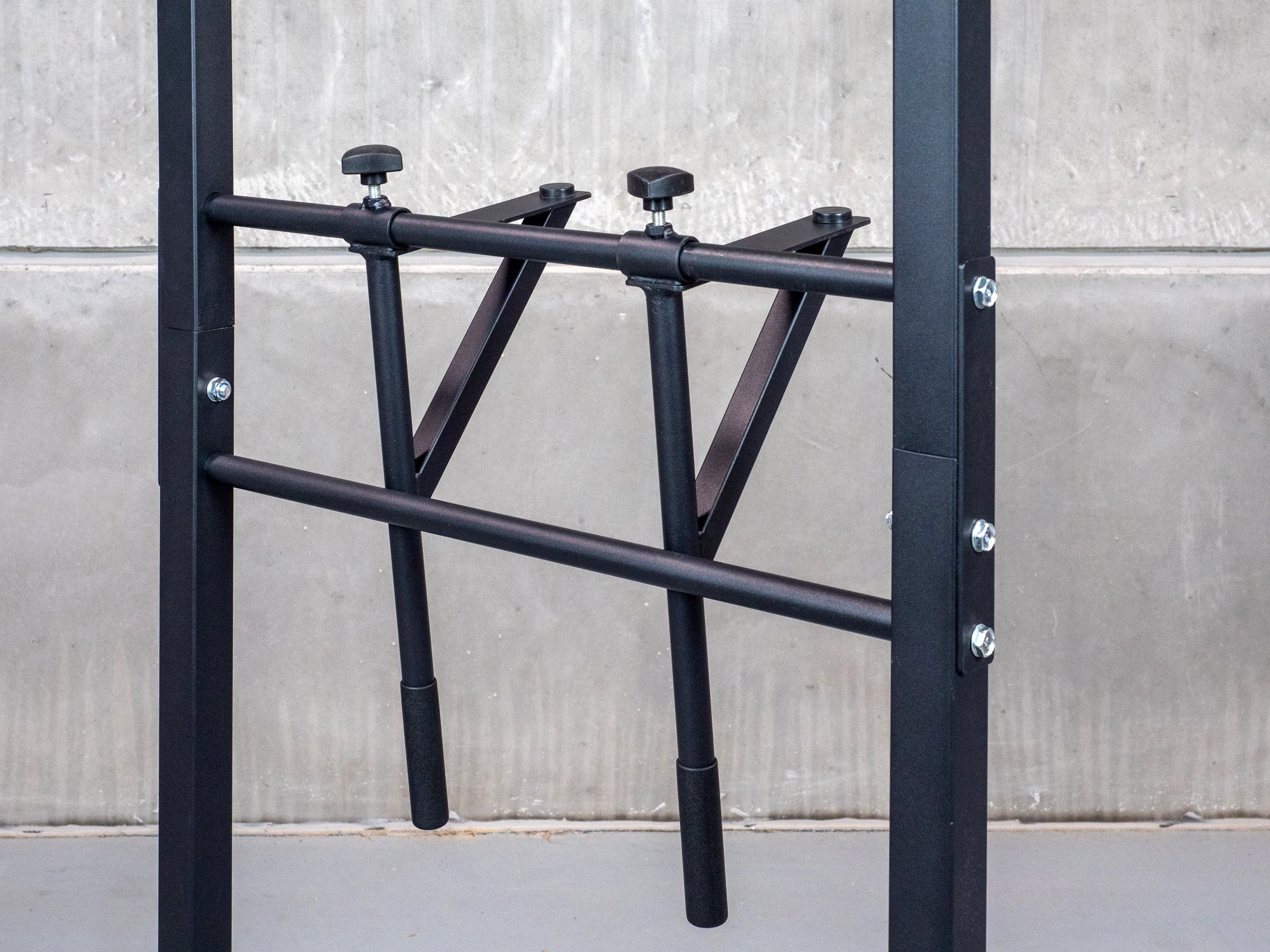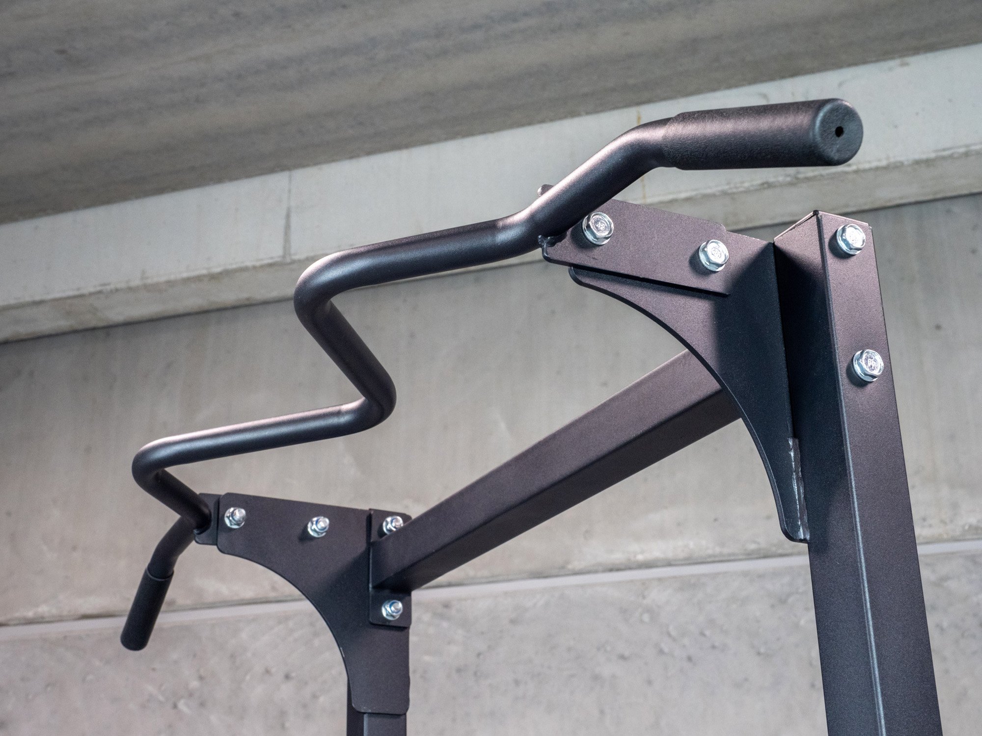 Jedná se o volně stojící stojanovou konstrukci s bradly a hrazdou, která pracuje s vlastní vahou. Kromě tyče na shyby a podstavce na přitahování či zvedání nohou disponuje robustním rámem, který je opatřen odolnou povrchovou úpravou v černé barvě. Stabilní konstrukce zajišťuje bezpečnost a komfort během cvičení.