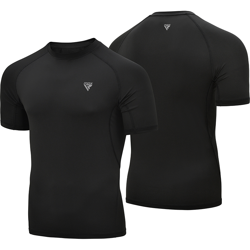 Nabízíme skvěle vypadající tréninkový chránič proti vyrážce. Skládá se z vysoce kvalitních materiálů, které jsou z 94 % z polyesteru a z 6 % z kompresního spandexu. Toto teplákové tričko má poloviční rukávy a vyznačuje se přiléhavým střihem. Dodává se v poutavé černé barvě. Funguje také jako kompresní tričko, které optimalizuje tělesnou teplotu a krevní oběh. Je konstruováno s měkkými a pevně zajištěnými plochými švy, které zvyšují celkovou odolnost. Odborně plní svůj účel ochrany před vyrážkami. Ideální pro venkovní sporty, jako je cyklistika, plavání, běh ve spojení s boxem, Muay Thai, MMA, válením, zápasením a dalšími.