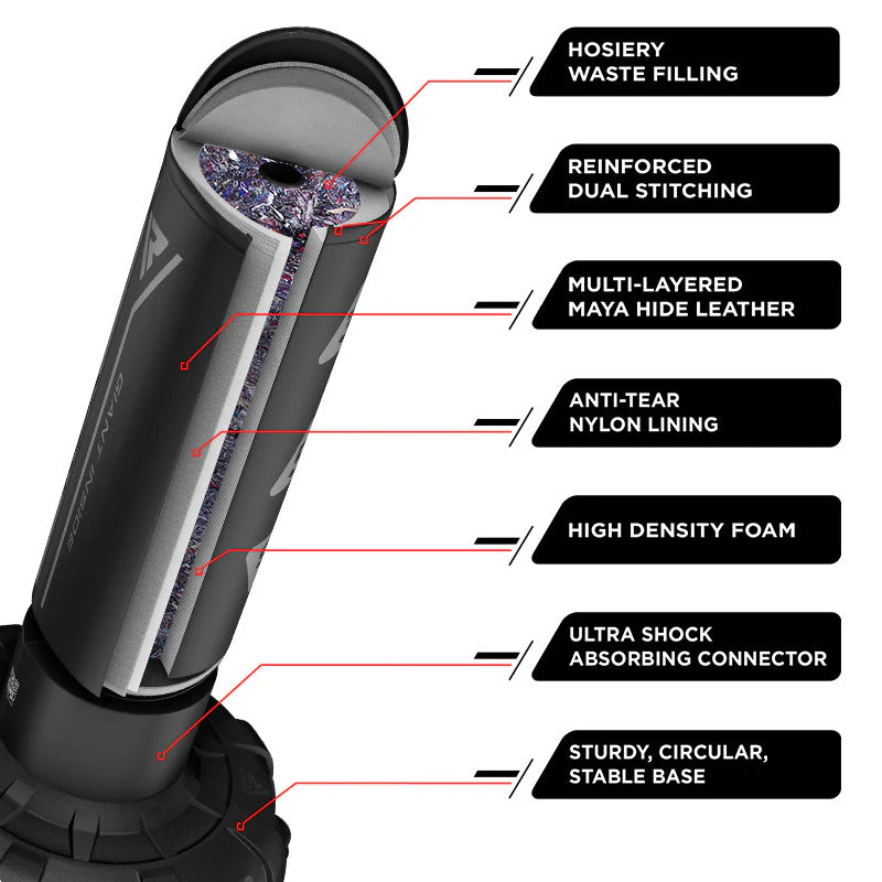 - Nezničitelný povrch: Pytel je potažen odolnou kůží Maya Hide NTearx™ s vnitřní PU podšívkou. Odolá tisícům tréninkových kol bez známky opotřebení.