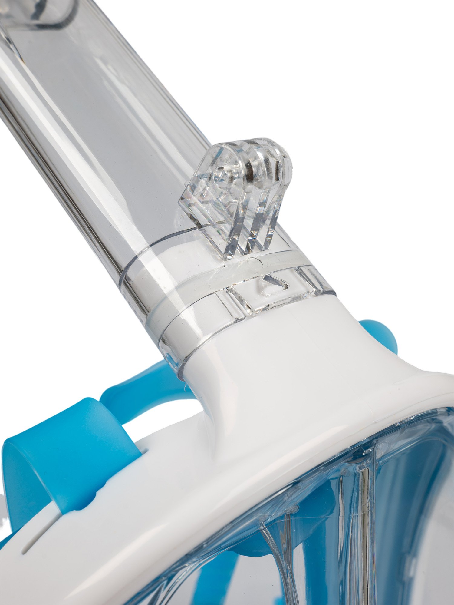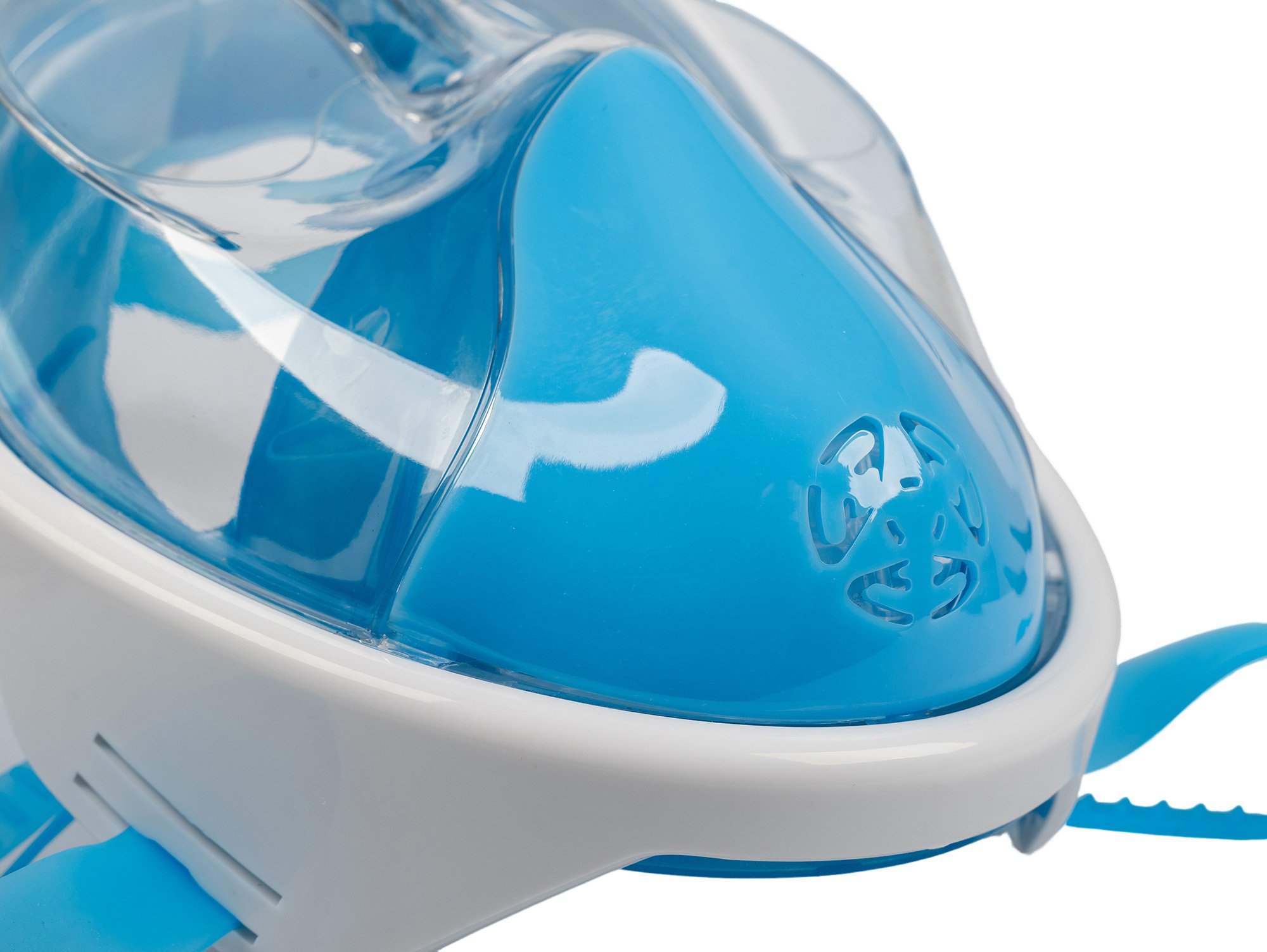 • Bezpečný dýchací systém - Šnorchlovací maska má zcela oddělený okruh pro přívod čerstvého vzduchu a odvod vydechovaného vzduchu, což účinně zabraňuje opětovnému vdechování vydechovaného oxidu uhličitého a snižuje riziko nepohodlí v důsledku nesprávného příjmu.