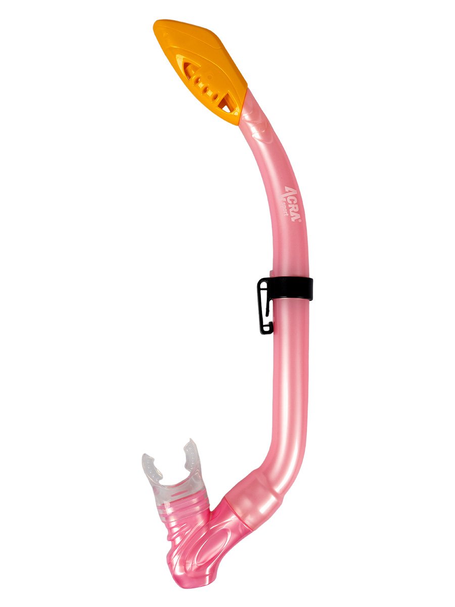 Suchý šnorchl s odolným designem proti stříkající vodě, pokročilý systém proti stříkající vodě potápěčské sady ACRA SPORT pro děti zabraňuje vniknutí vody do šnorchlu a odvzdušňovací ventil umožňuje vyčištění a vypuštění vody ze šnorchlu. Jednoduchý klip umožňuje snadné připevnění suchého šnorchlu k masce