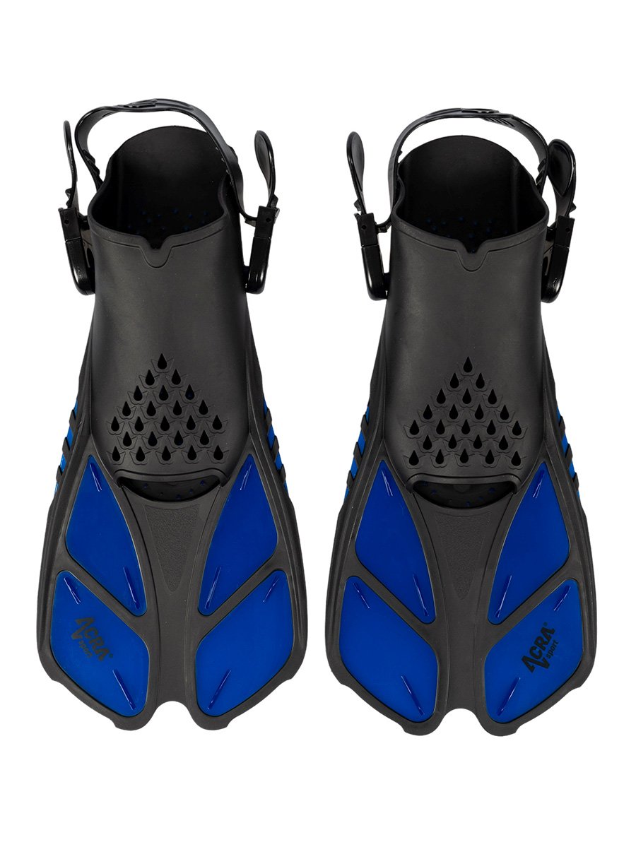 - Flexibilní nastavitelné potápěčské ploutve: delší, lehké a responzivní čepel zajišťují plynulý, snadný a zároveň silný odraz. Ploutve s otevřenou patou a nastavitelným popruhem, kapsa na nohu a popruh jsou vyrobeny z odolné gumy, která zajišťuje pohodlné nošení. Ploutev Acra Sport poskytuje vynikající tah s mírnou silou při kopání, ideální pro vaše šnorchlování nebo potápění.