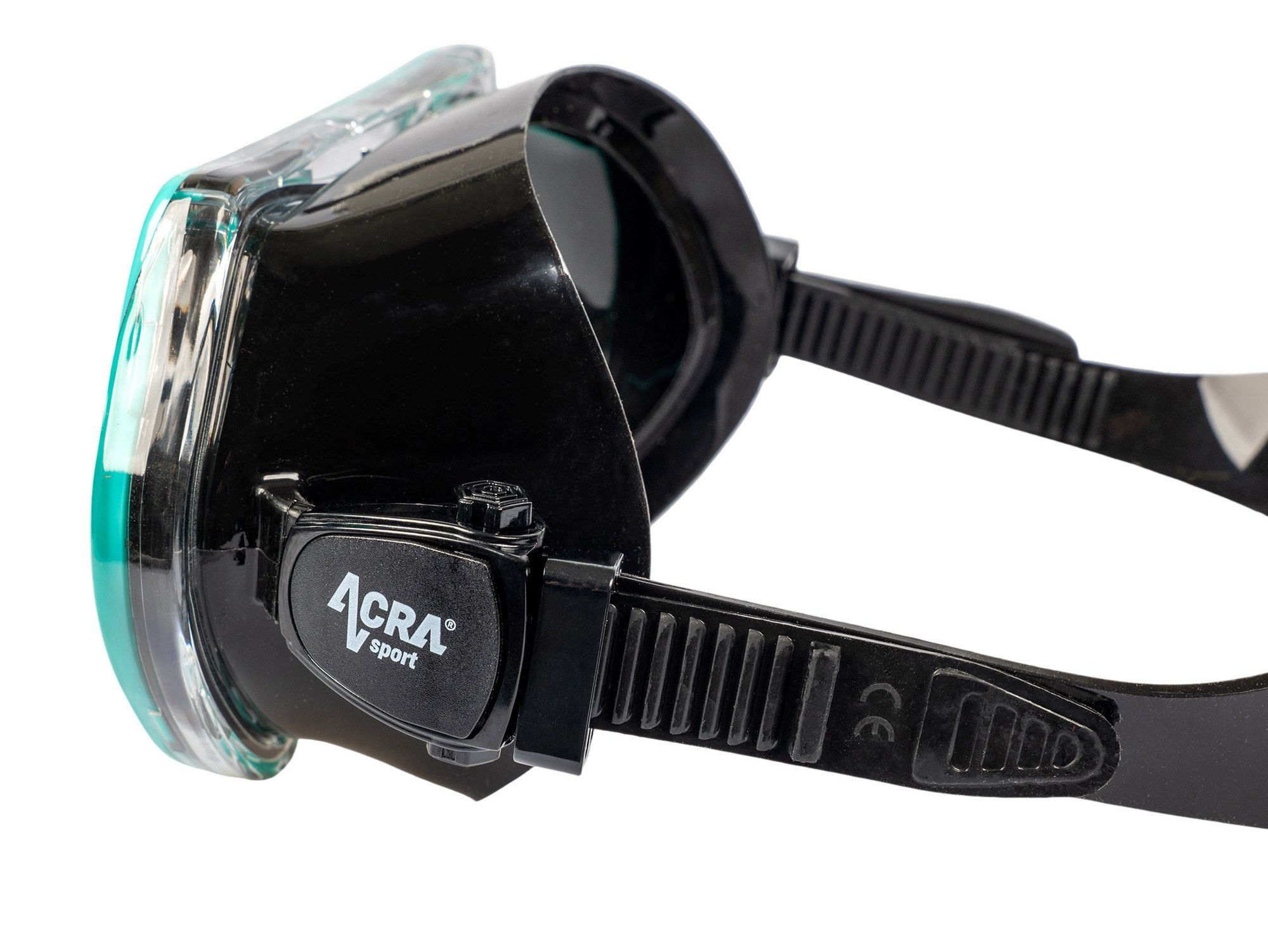 - Potápěčská šnorchlovací maska s panoramatickým výhledem: 180° HD Panoramatický výhled. Vrobená ze čtyř okének pro panoramatický výhled s tvrzeným skleněným zorníkem a hypoalergenním silikonovým lemem, šnorchlovací maska Acra Sport odolá podvodnímu tlaku při potápění a šnorchlování a nabízí maximální pohodlí. Lem potápěčské masky je vyroben z měkkého a pružného silikonu a náustek z potravinářského silikonu je bezpečný, vytváří vodotěsné utěsnění s obličejem každého řidiče a dokonale se připevňuje k ústům bez zvláštního zápachu.