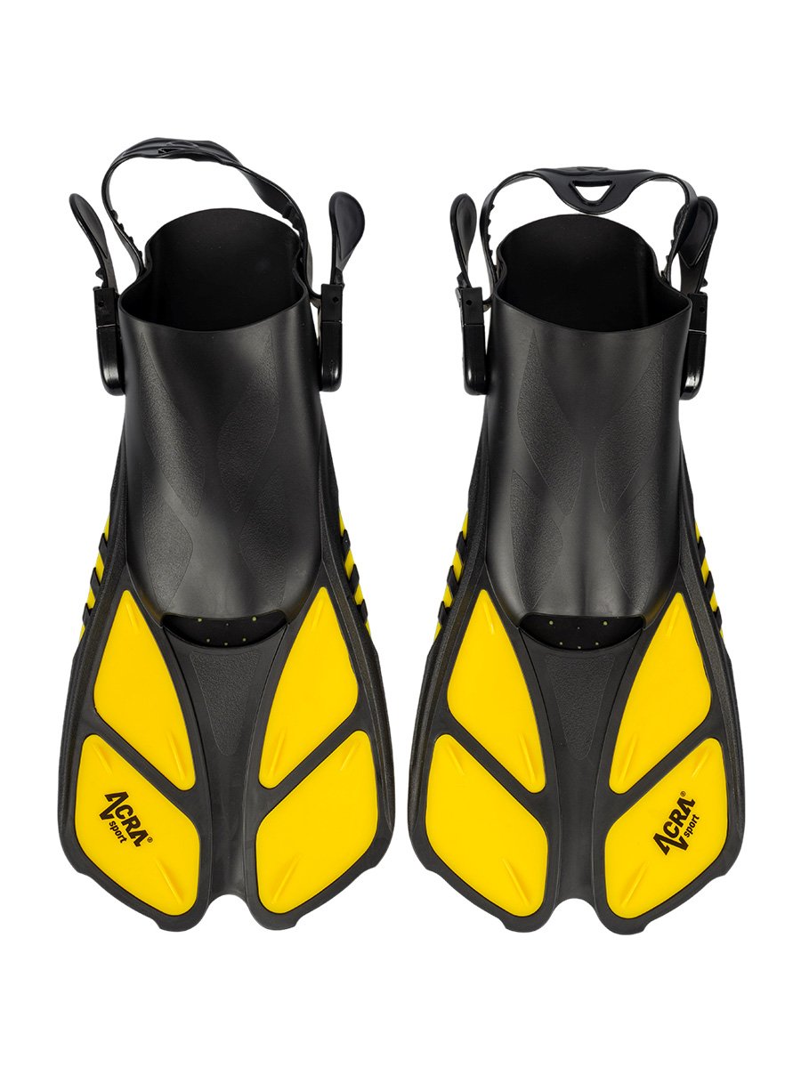 - Flexibilní nastavitelné potápěčské ploutve: delší, lehké a responzivní čepel zajišťují plynulý, snadný a zároveň silný odraz. Ploutve s otevřenou patou a nastavitelným popruhem, kapsa na nohu a popruh jsou vyrobeny z odolné gumy, která zajišťuje pohodlné nošení. Ploutev Acra Sport poskytuje vynikající tah s mírnou silou při kopání, ideální pro vaše šnorchlování nebo potápění.