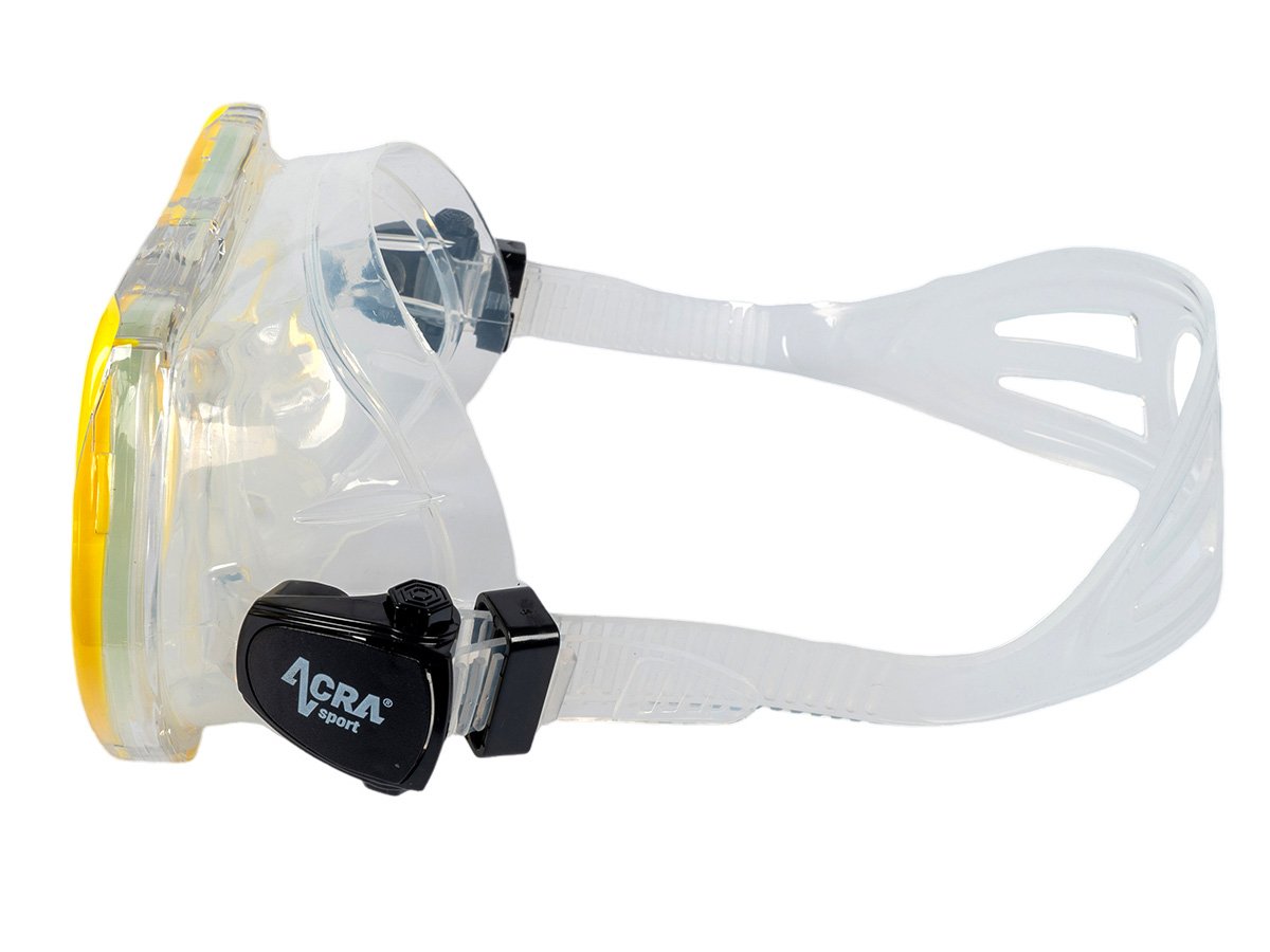 - Potápěčská šnorchlovací maska s panoramatickým výhledem: 180° HD Panoramatický výhled. Vrobená ze čtyř okének pro panoramatický výhled s tvrzeným skleněným zorníkem a hypoalergenním silikonovým lemem, šnorchlovací maska Acra Sport odolá podvodnímu tlaku při potápění a šnorchlování a nabízí maximální pohodlí. Lem potápěčské masky je vyroben z měkkého a pružného silikonu a náustek z potravinářského silikonu je bezpečný, vytváří vodotěsné utěsnění s obličejem každého řidiče a dokonale se připevňuje k ústům bez zvláštního zápachu.