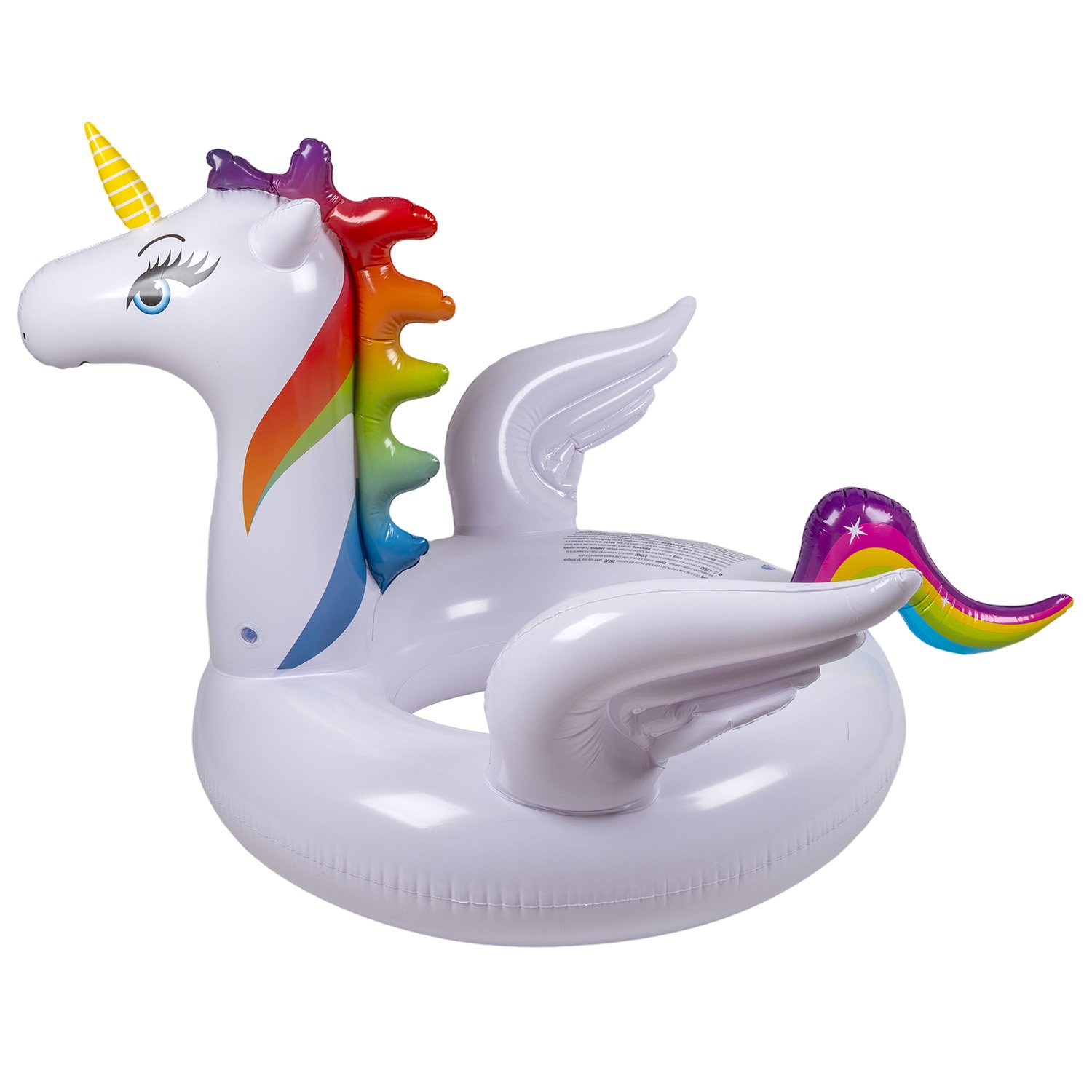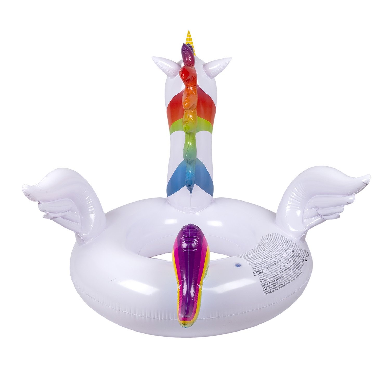 Jedinečný tvar jednorožce, duhové prvky a veselý výraz dělají z tohoto kruhu naprostou plážovou senzaci. A navíc – vypadá skvěle na fotkách!