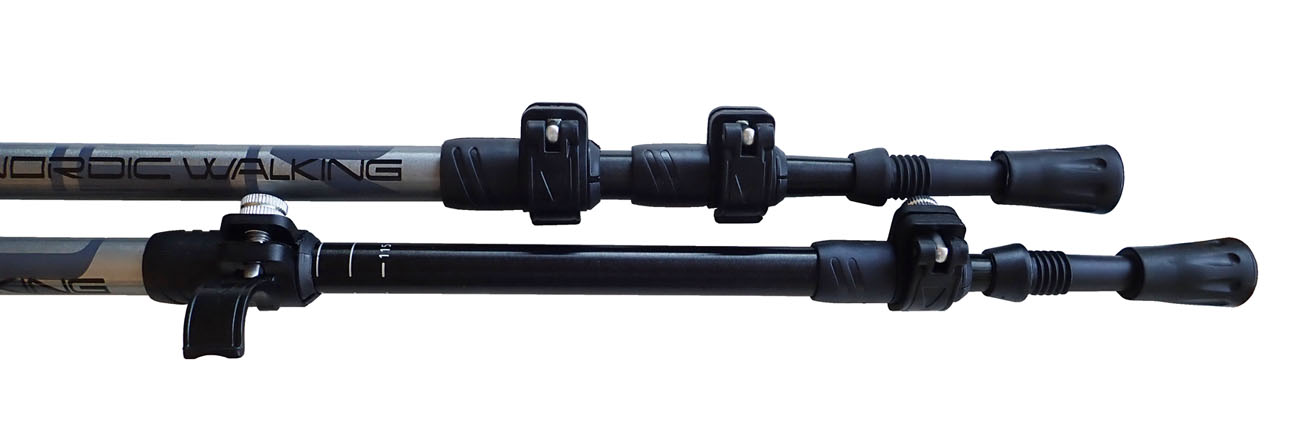 Teleskopické hole 3-dílné AL + 40 % grafit, odlehčené, nastavitelné rozmezí délek je 72 - 140 cm. Korkové rukojeti jsou lehké a příjemné na držení.