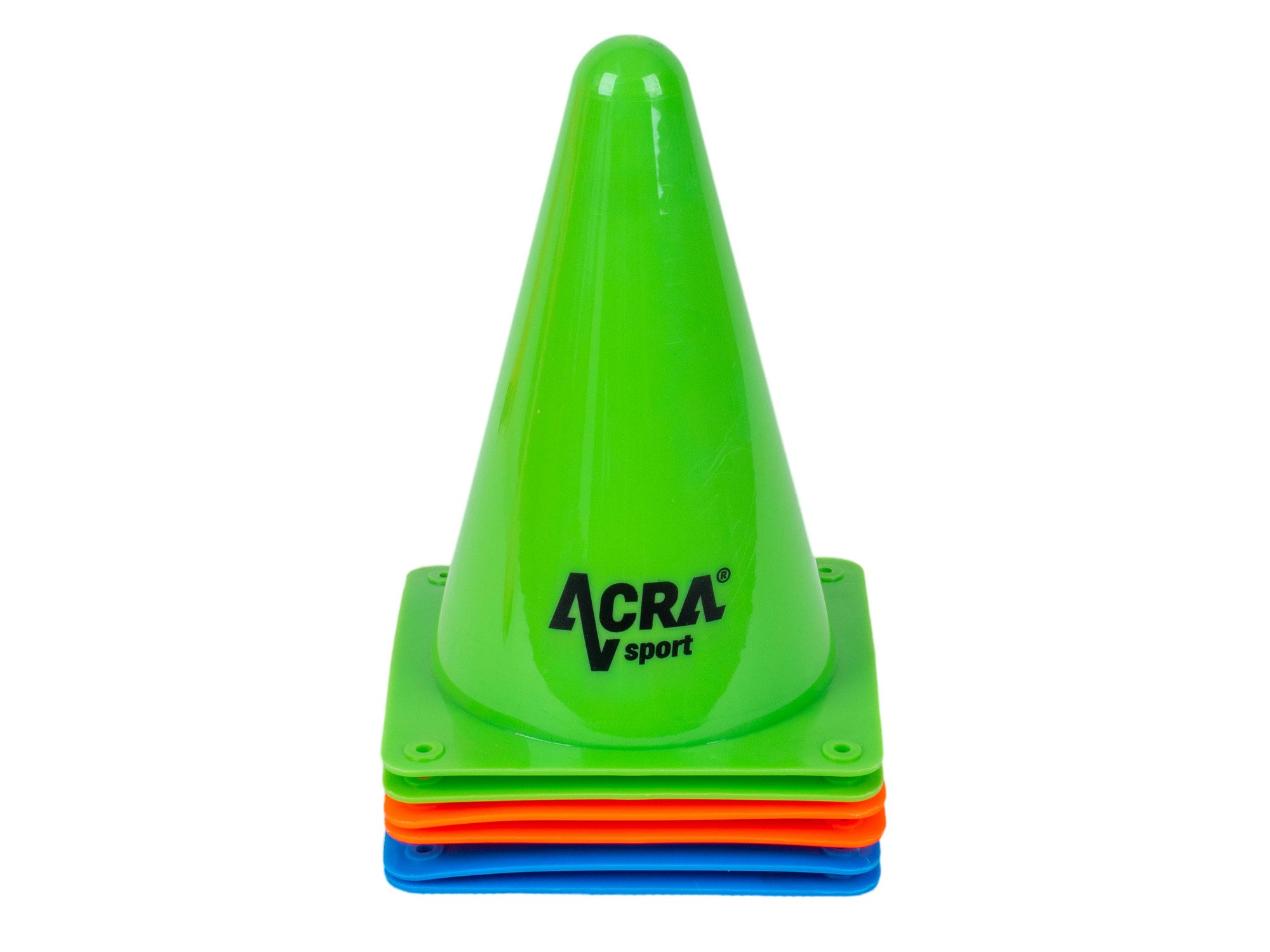 Tréninkové kužely Acra tvoří sadu šesti kusů, ideální pro sportovní trénink a různé pohybové aktivity.